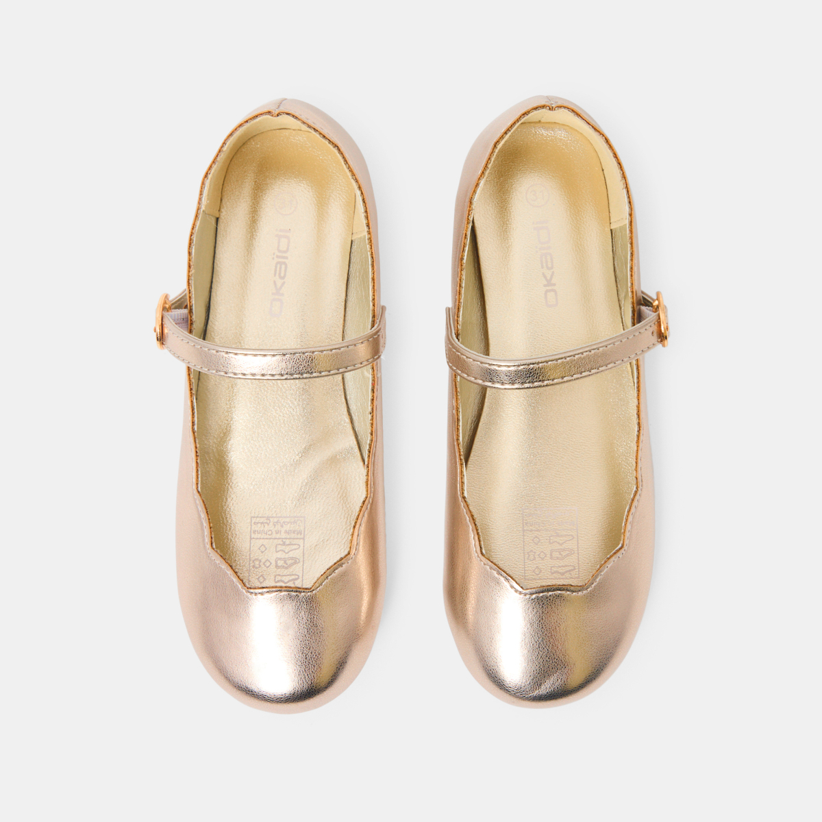 حذاء باليه للفتيات لامع مع إبزيم له حواف تاجية في غاية الأناقة. حذاء أنيق مع نعل داخلي من الجلد لراحة قدم الطفل. متوفر أيضًا بمقاسات أوبايبي (Obaïbi) للمناسبات.