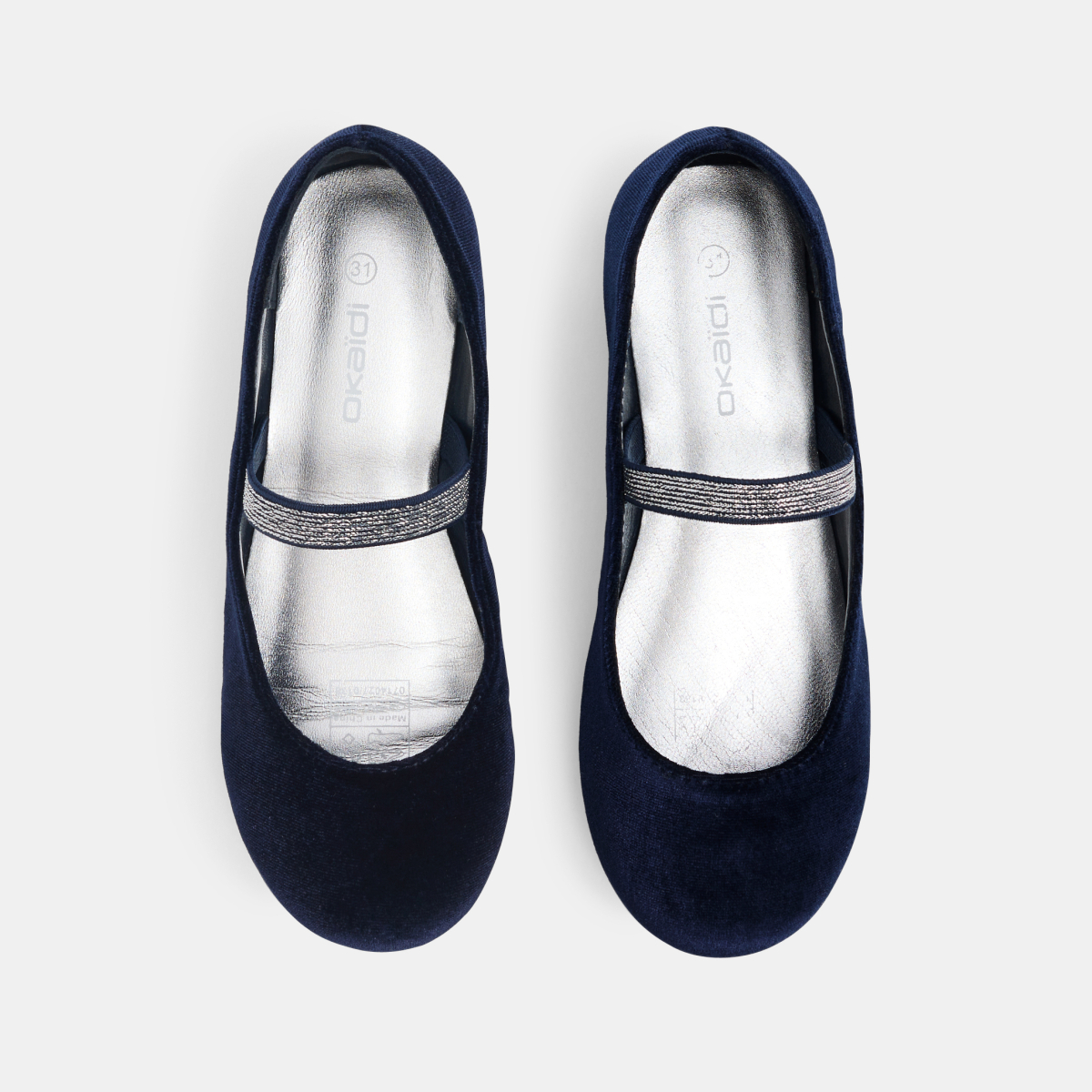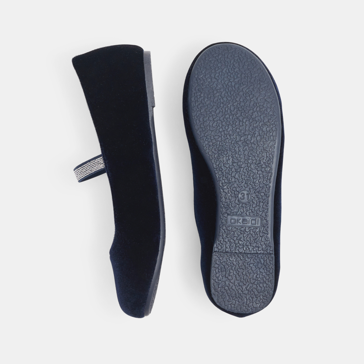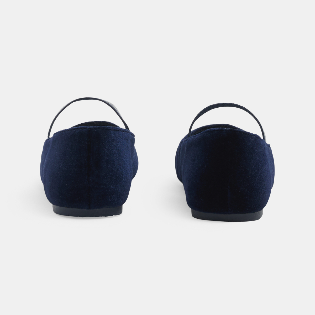 حذاء باليرينا من المخمل باللون الأزرق الداكن للفتيات