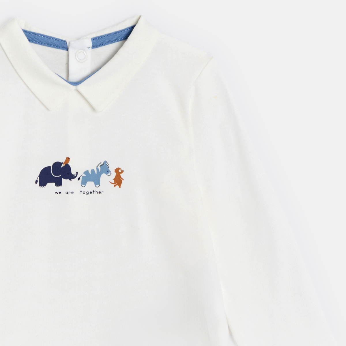 تعتبر هذه المجموعة المكونة من 3 أقمصة بأكمام طويلة بياقات صغيرة قطعة أساسية لإلباس الأولاد منذ اليوم الأول، وتتناسب مع مجموعة Obaïbi. مزين برسوم أو خطوط من الجيرسيه القطني الناعم، مع أزرار كبس على الظهر والجسر.