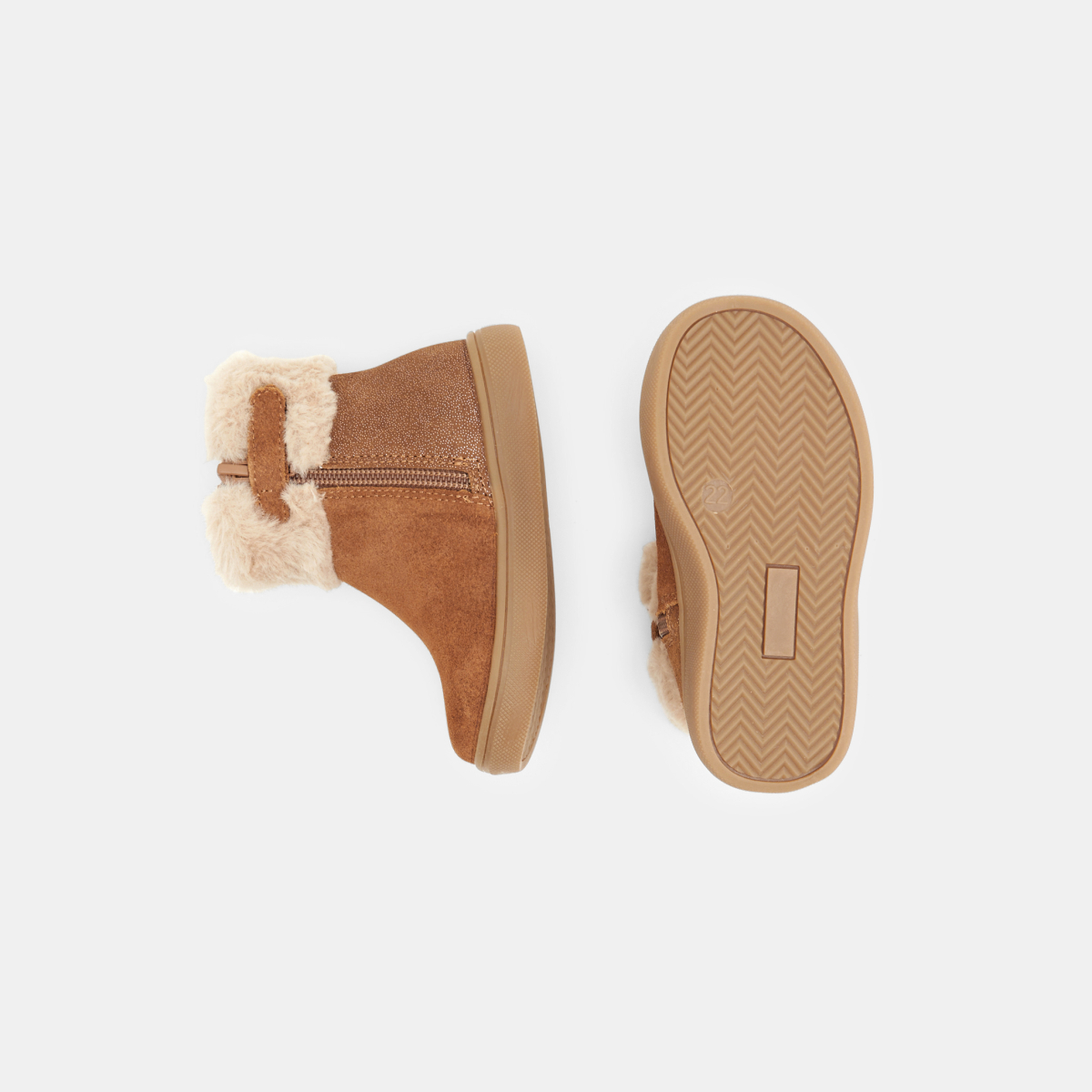 للحفاظ على دفء أقدام الصغيرات في الشتاء، هذا الزوج من الأحذية المبطنة بالفراء يتماشى مع الموضة: لون جملي وبطانة دافئة بأساور فرو للفتيات اللاتي يقدرن راحتهن. نعل عالٍ لدعم جيد للقدم. مصنوع من الجلد، الإغلاق بسحّاب.