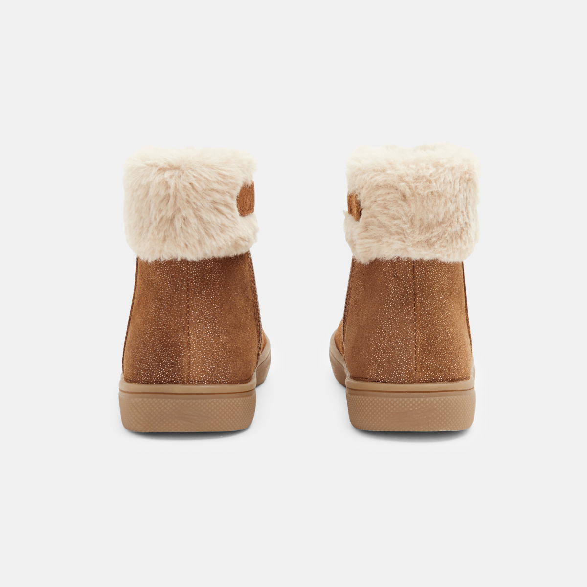 حذاء بوت من الجلد مبطّن بالفرو باللون البني للفتيات الصغيرات
