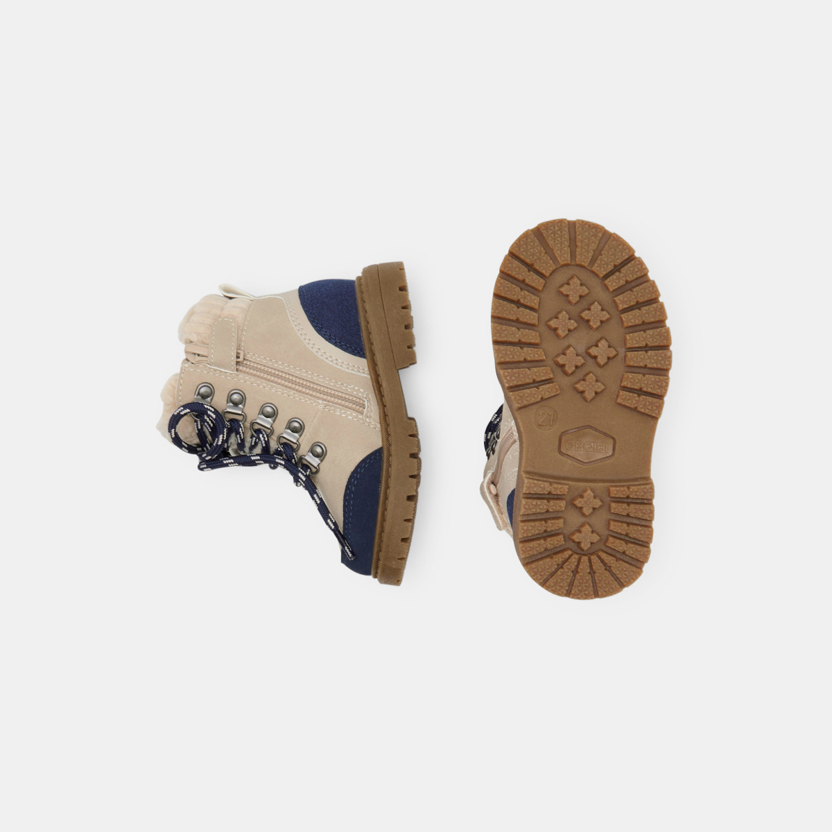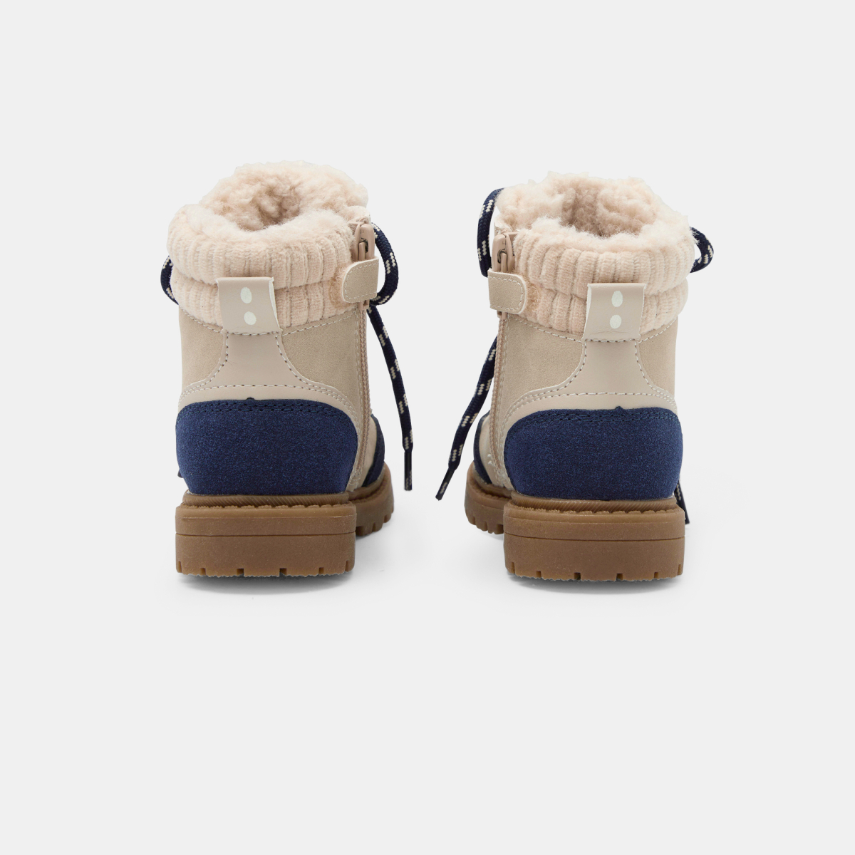 الجميع مُعجب بشدة بالمظهر الجبلي لهذه الأحذية المُبطّنة بالفرو ! سهل الارتداء بفضل السحّاب الموجود على الجانبين، وهو يوفر الدفء والراحة للصبيان الصغار الذين لا يخافون البرد. تصميم ذو شكل عالي. نعل مضلع