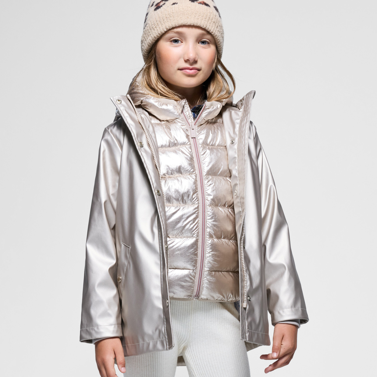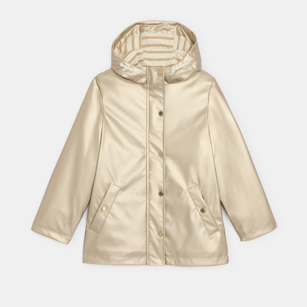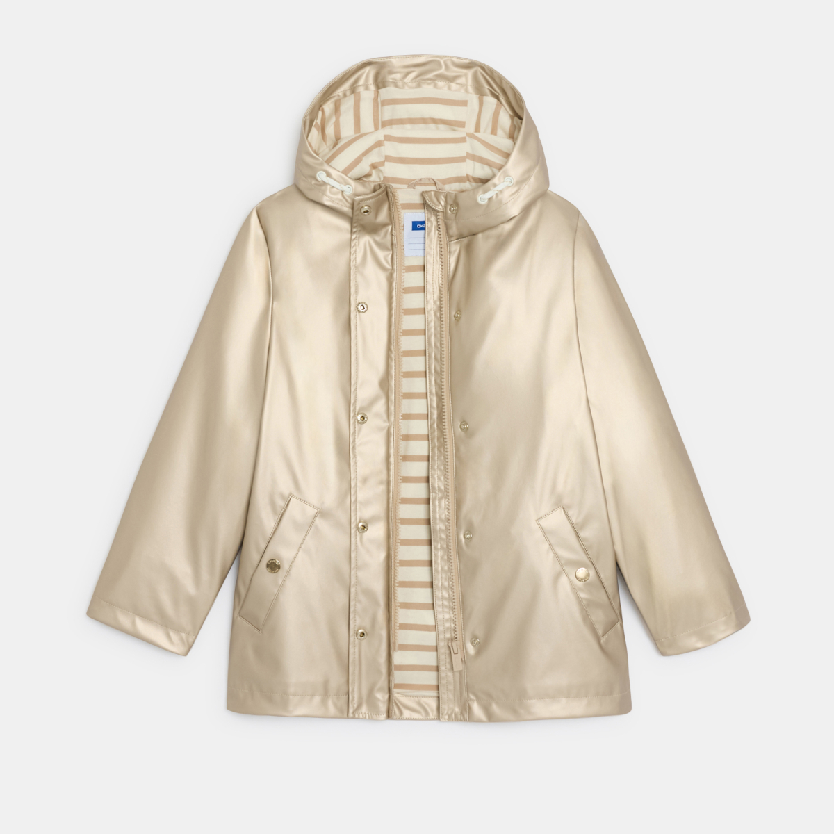 معطف واقٍ من المطر بغطاء رأس ذهبي للفتيات