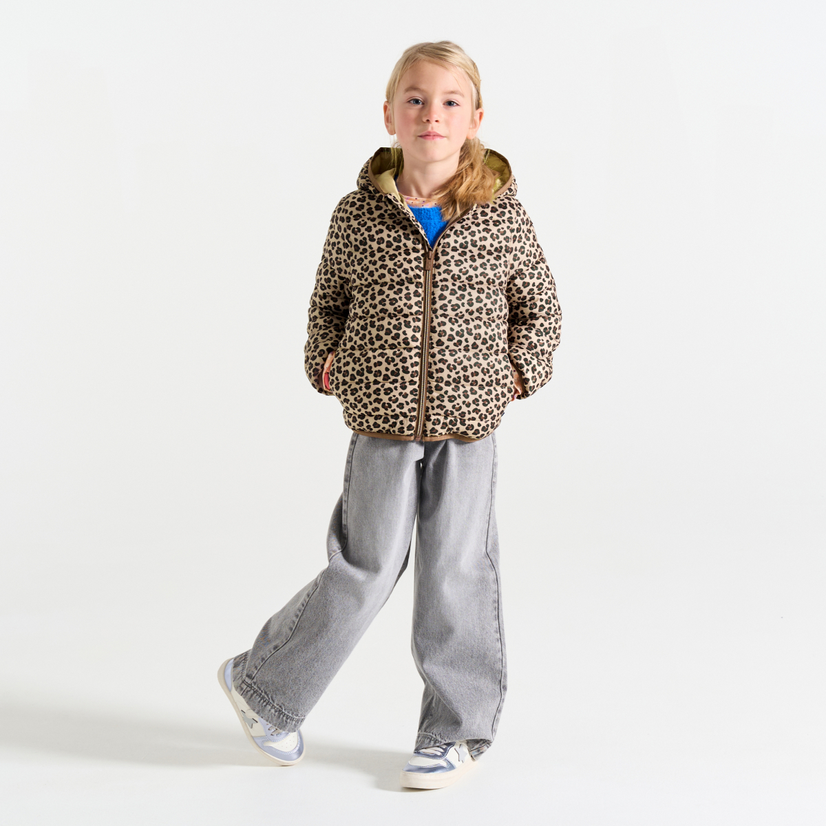 سُترة خفيفة ومبطنة بقلنسوة بطبعة جلد الفهد للفتيات