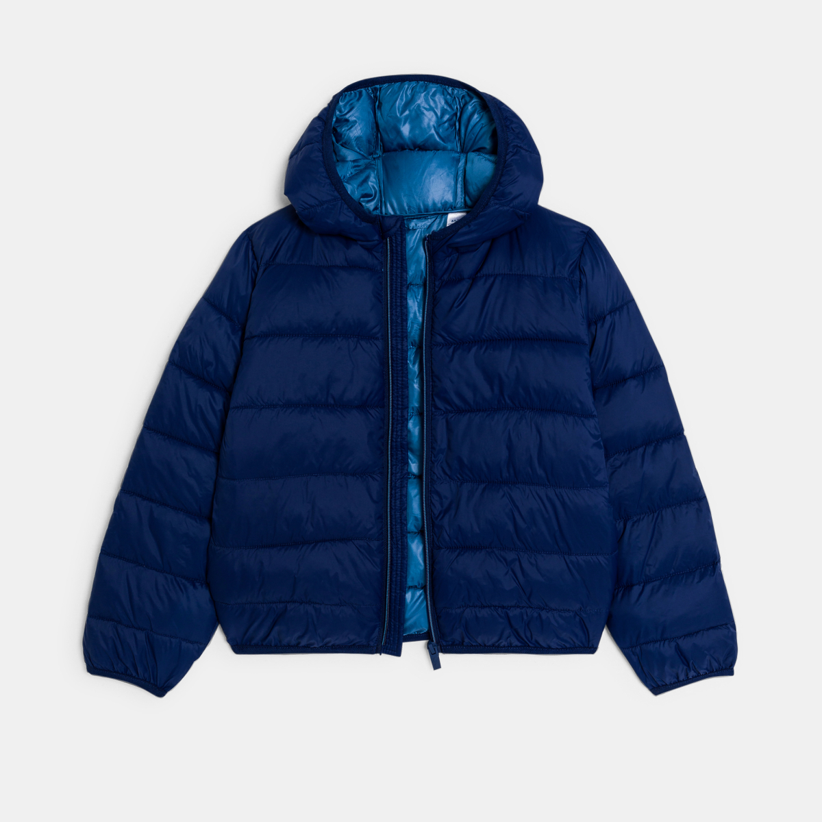 سُترة باللون الأزرق وبتصميم مُبطن وقصّة مضبوطة على مقاس الجسم، وهي من القطع التي لا غنى عنها في خزانة ملابس الفتيان. مُصممة بقماش طارد للماء وواقي من العوامل الجوية. مزودة بغطاء للرأس مُدمج ويتم إقفاله بسحّاب، وهة سهل الارتداء. سترة مثالية لارتداءها في الحياة اليومية، فالشعور بالراحة والدفء مستديم عند ارتداءها بفضل نعومة بطانتها.
