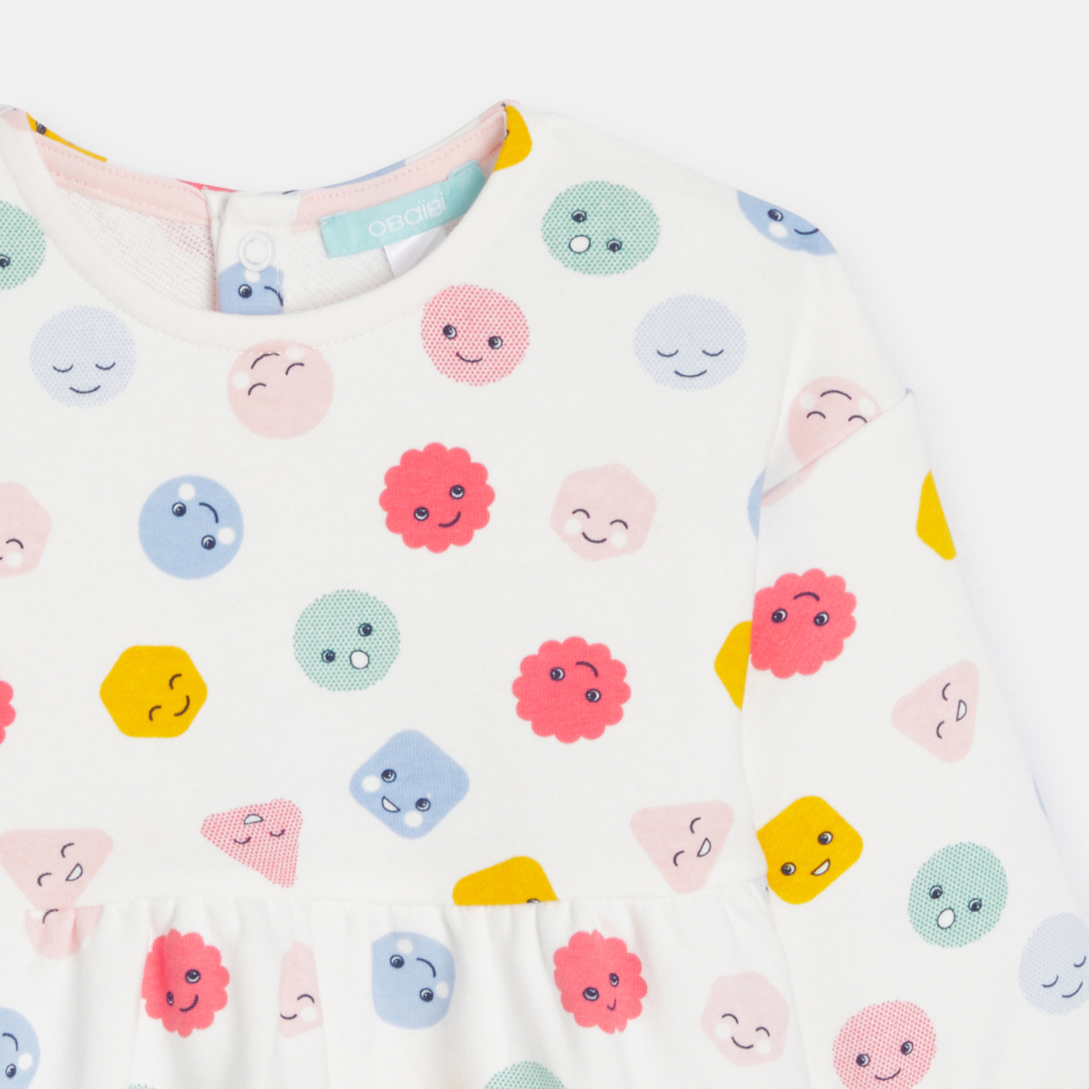 الابتسام والسعادة والضحك والاندهاش، الكثير من المشاعر مرسومة بشكل طريف على هذا الفستان الميلتون الخفيف الناعم. قصّة مريحة وواسعة بأكمام طويلة تضفي لمسة من المرح على خزانة ملابس أي فتاة. الإغلاق بأزرار كبس من الخلف.