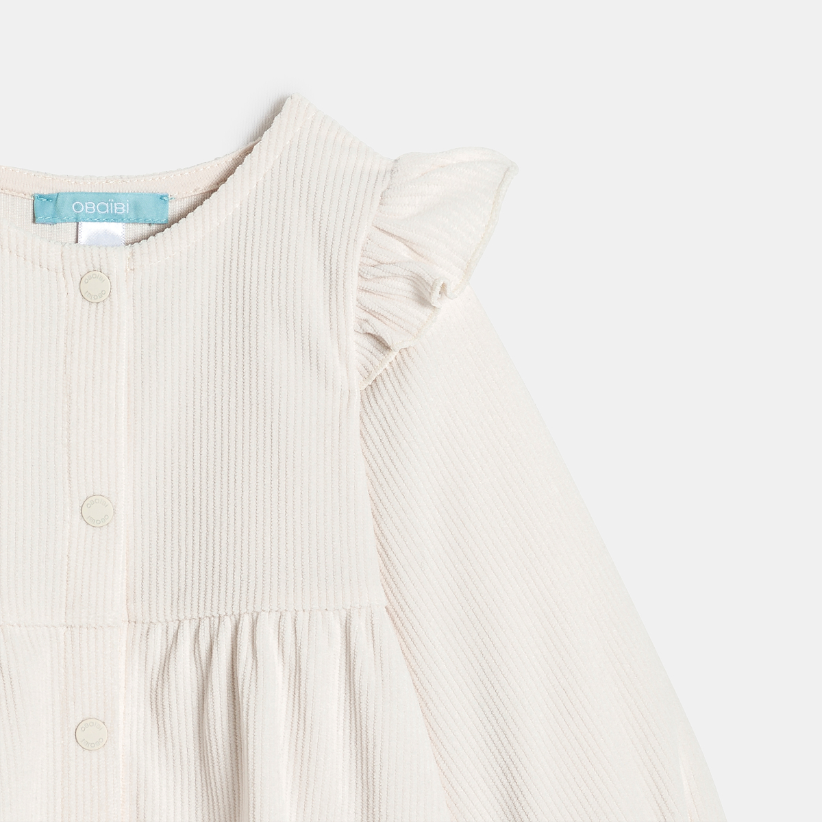 فستان من المخمل المُضلع، باللون البيج للفتيات الصغيرات