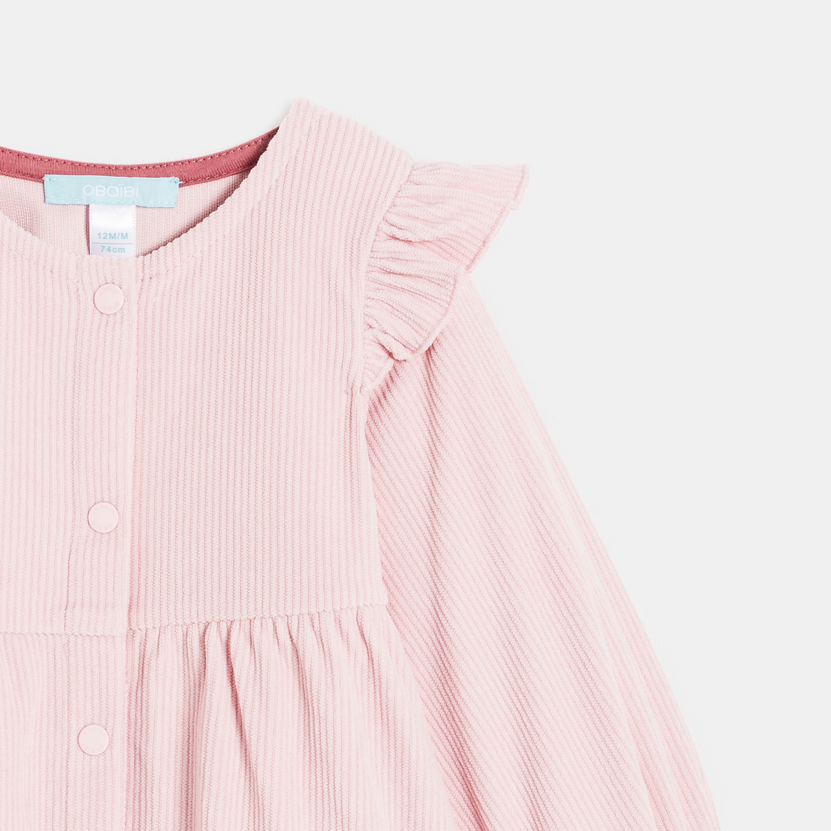 اختاري هذا الفستان الوردي ذو الأكمام الطويلة المثالي لأي مناسبة. بفضل قماش المخمل المضلع الناعم وقصّته الواسعة، يمنح راحة مثالية وأناقة في كل حركة. يتميز بكشكشة على الكتفين وأزرار كبس أمامية لسهولة الارتداء. مثالي للاستخدام اليومي، حيث يجمع بين الأناقة والطراز العملي.