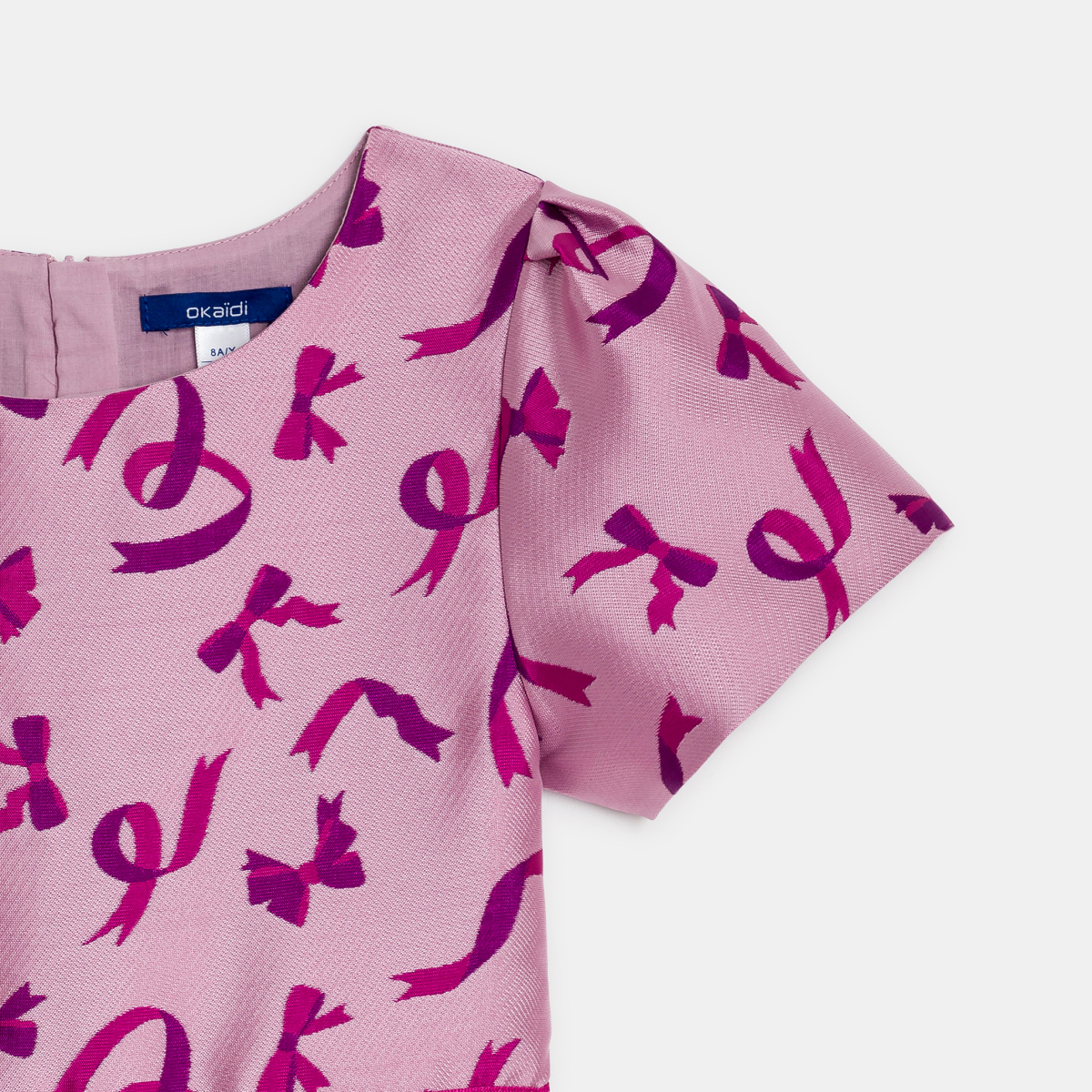 فستان جاكار عليه نقش ربطة العنق وردي اللون للفتيات