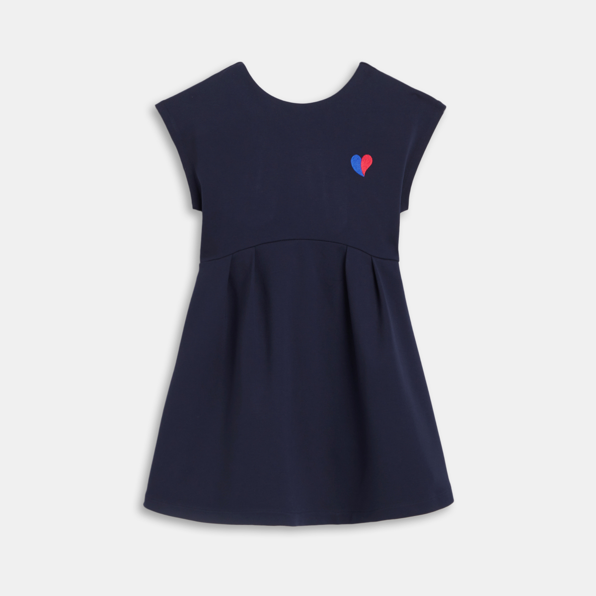 فستان بأكمام قصيرة أزرق داكن مطرز عليه قلب، للفتيات