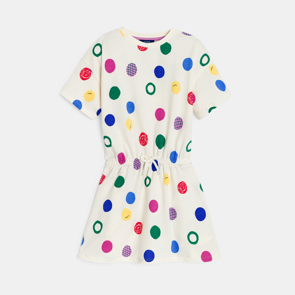 فستان بأكمام تيشيرت أبيض اللون منقط للفتيات