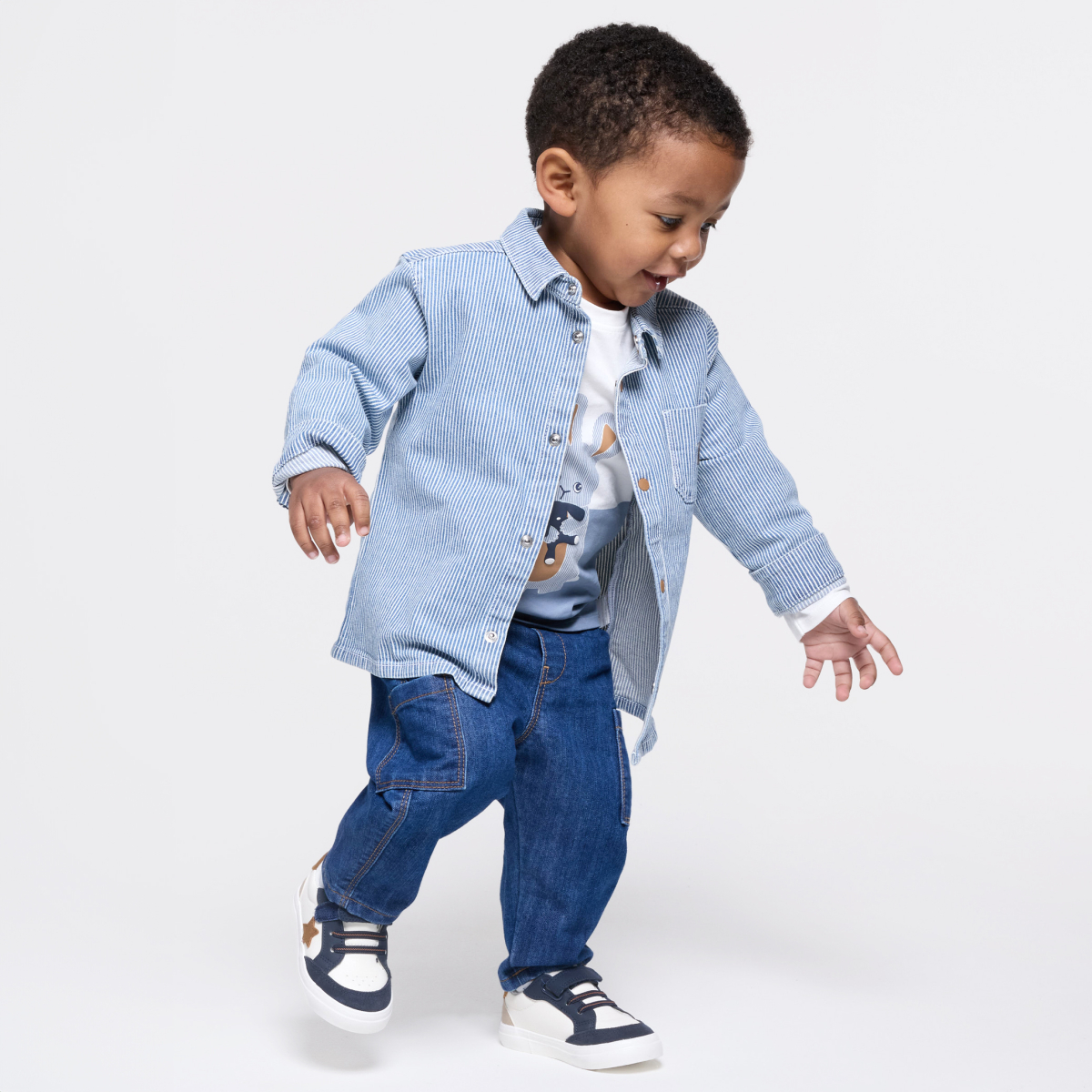 إنه البديل المثالي للجاكيت عندما يكون الطقس لطيفًا، هذا القميص بقصته المستقيمة يتكيف مع جميع أشكال الجسم. الكل يحب خطوطه الدقيقة وطريقة إغلاقه بأزرار كبس لسهولة إلباسه للأولاد.