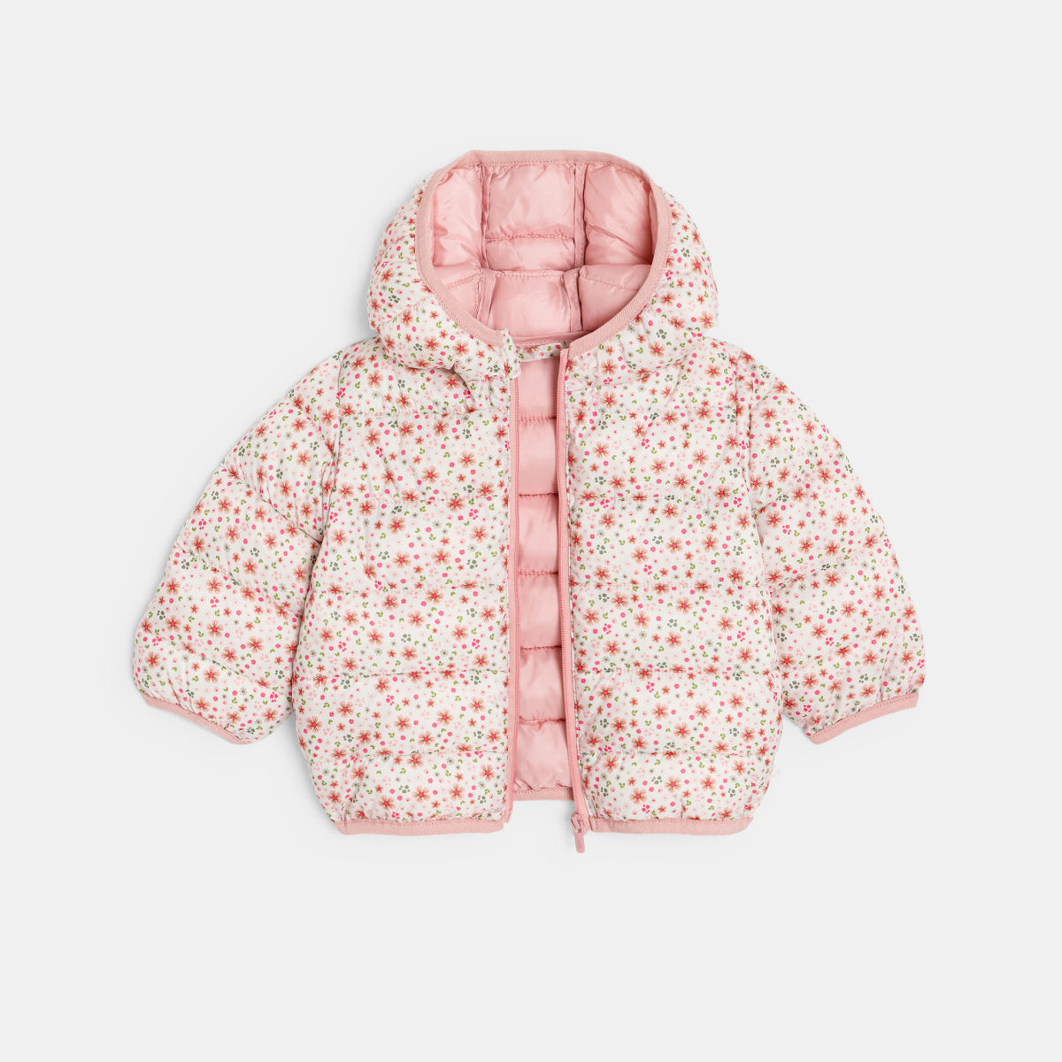 سترة مبطنة مشجرة، وردية اللون، للطفلة الصغيرة