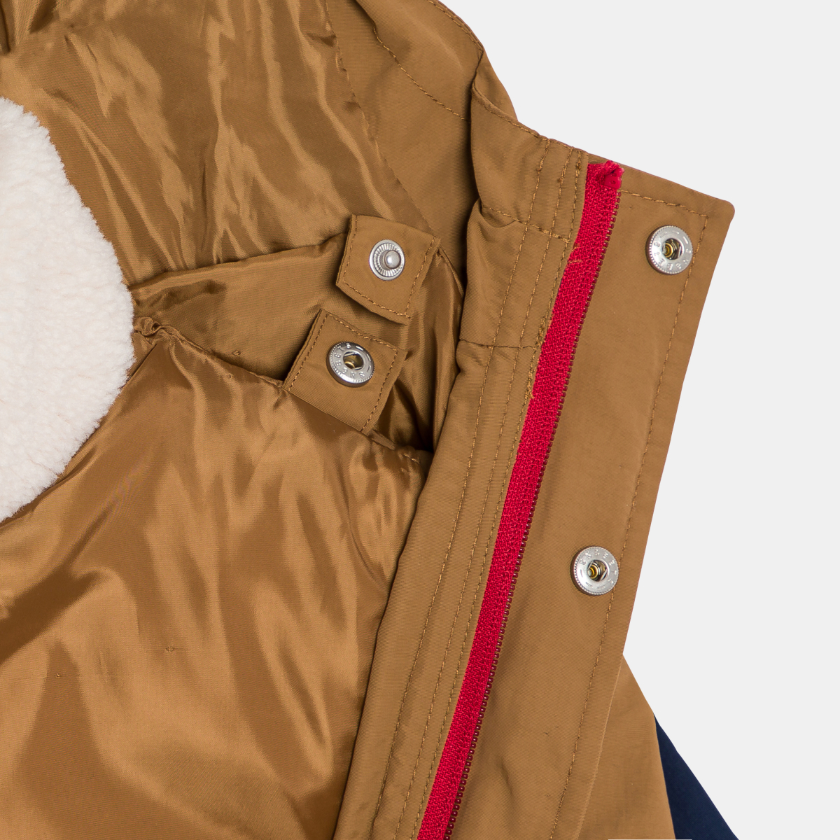 إنها 3 في 1 سترة بغطاء رأس + جاكيت مبطن بدون أكمام المبطن/ بطانة ذات وجهين، يمكن ارتداء القطعتين معًا أو بشكل منفصل حسب حالة الطقس. جاكيت بغطاء رأس مقاوم لقطرات الماء: فتحة مخفية بسحّاب تحت طية أزرار ضغط، وجيبين، وأكمام طويلة، وأساور وحاشية مطاطية. جاكيت بدون أكمام مبطن من جانب وبطانة من صوف الشيربا من الجانب الآخر (بوجهين): ياقة عالية، فتحة بسحاب، فتحات ذراع بقصّة رجلان، حاشية مستقيمة.