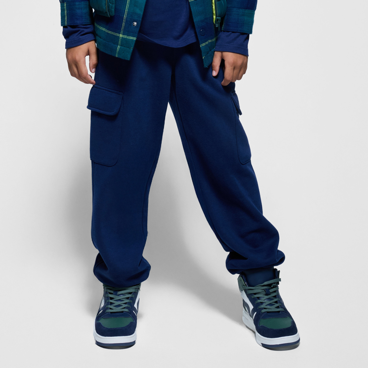 بنطال رياضي للركض مريح بجيوب كارغو باللون الأزرق الداكن للأولاد