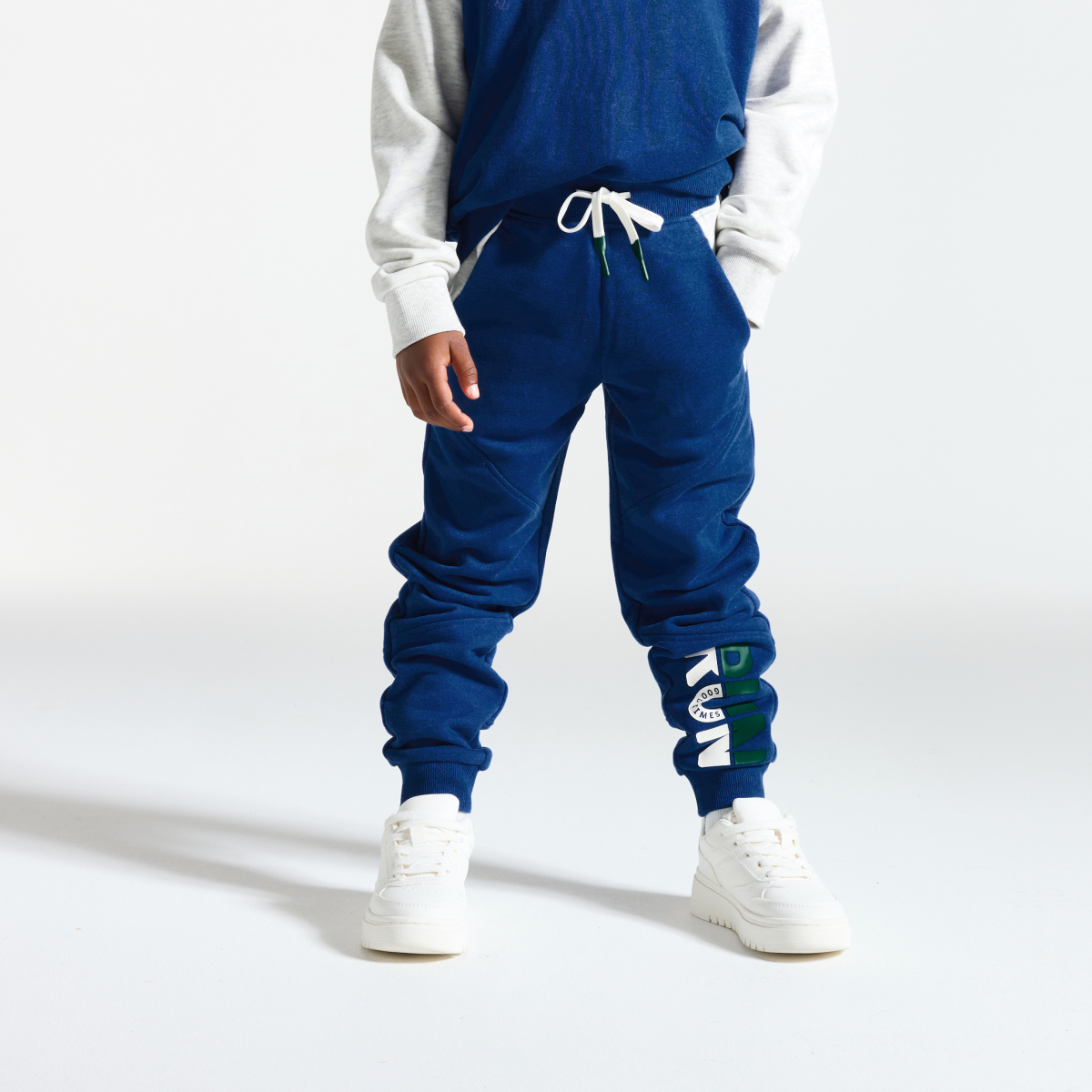تدعو رسالة "RUN" الأولاد إلى الركض بشكل أسرع مع هذا البنطلون الرياضي المصنوع من الميلتون الناعم. خيار آخر: الراحة بعد بذل المجهود، في المدينة أو في المنزل. قصة رياضية. خصر مضلع ومرن مع شريط يمكن ربطه. جيبان. إضافات بألوان متباينة. البنطلون مضلع عند أسفل الساقين.