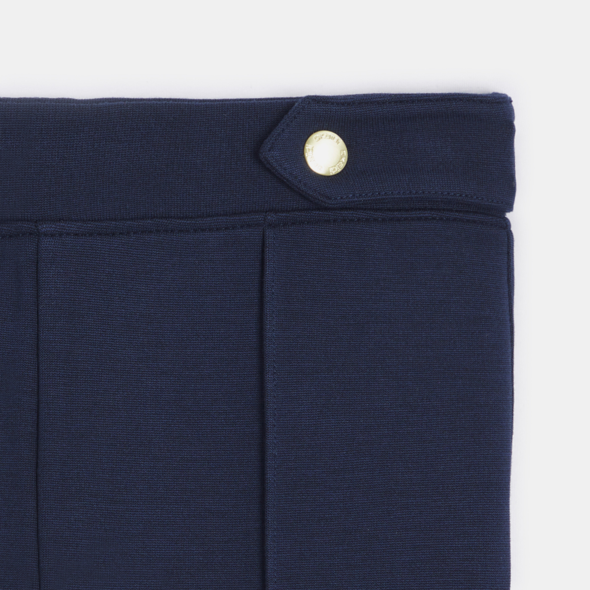 إنه جديد: البنطلون المصنوع من قماش الجينز يزيد من أناقته مع طيات ملحوظة في الأمام وأزرار كبس ذهبية عند الخصر. أرجل رشيقة، وقصة سكيني نحيفة. خصر مطاطي، ومحيط خصر قابل للتعديل. خياطة بنفس اللون.