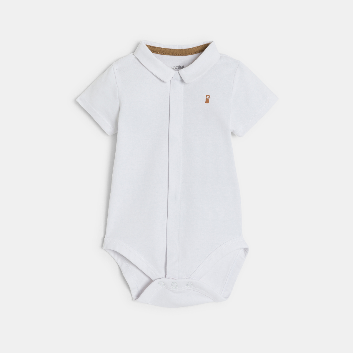 نحن نحب نعومة القطن والكتان المستخدم في هذا السالوبيت القصير. تصميم مريح ومثالي منذ الأيام الأولى يتناسب مع البودي ذا الأكمام القصيرة ذات وبرقبة بولو. لتسهيل تلبيس الأولاد، توجد فتحه بأزرار ضغط.