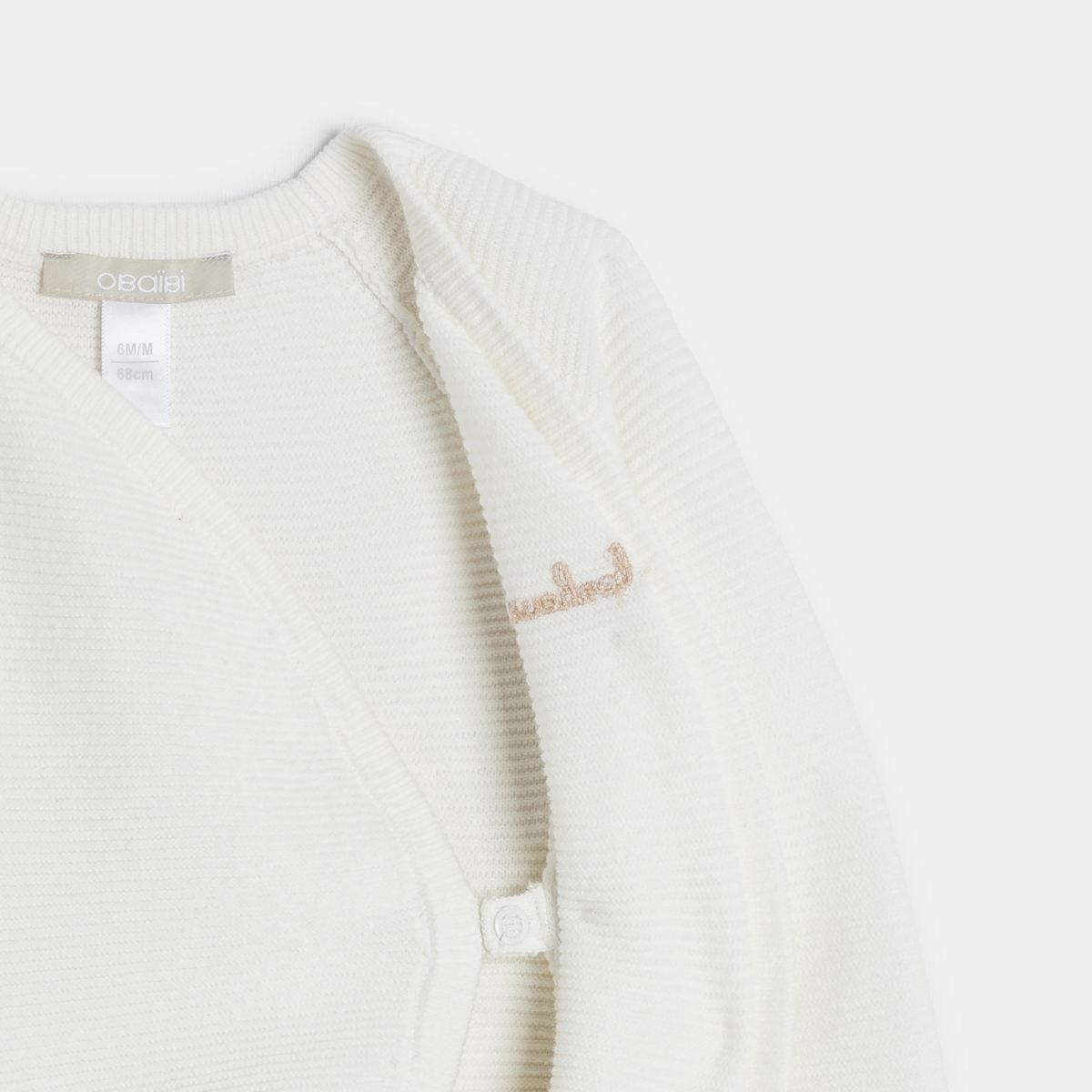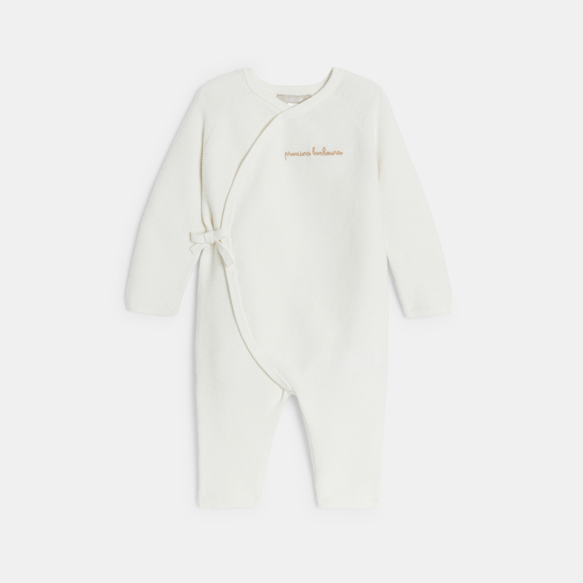 أفرول طويل بقماش التريكو الفاخر، أبيض اللون، للفتيات حديثي الولادة