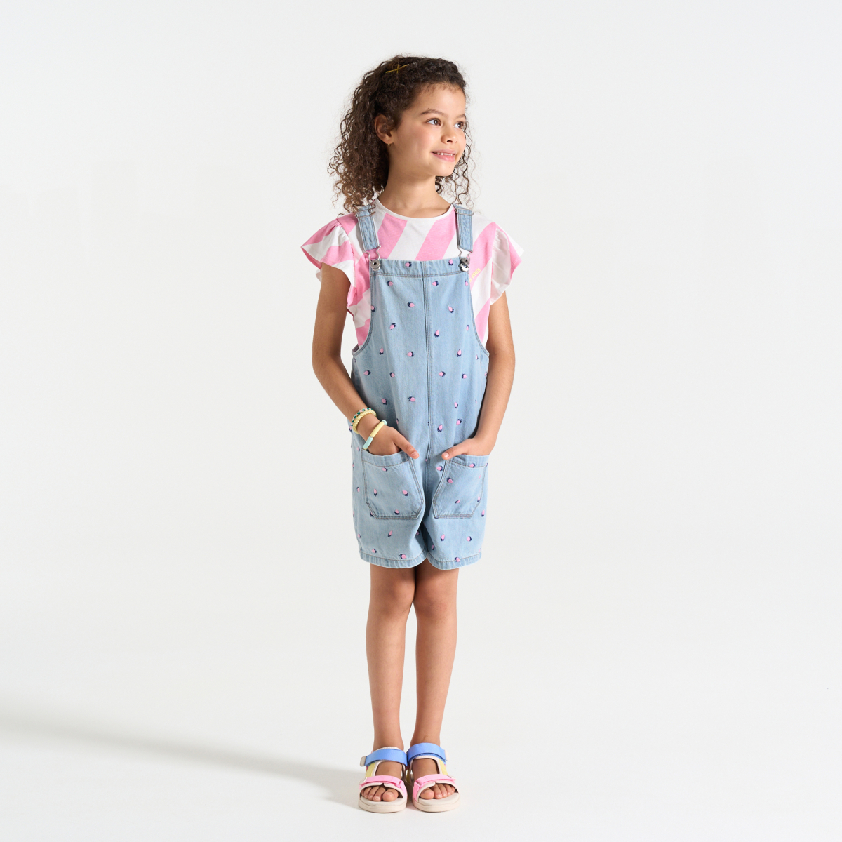 بدلة سالوبيت قصيرة من الجينز، باللون الأزرق الفاتح ومُطرز، للفتيات