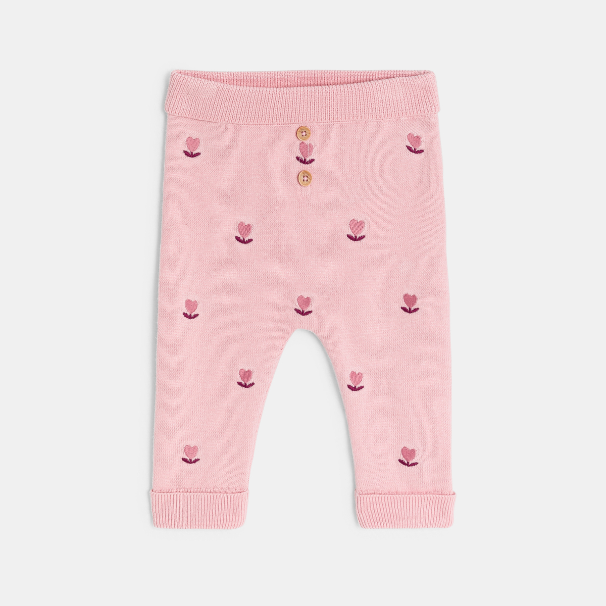 بلوفر وبنطلون من قماش التريكو عليه أزهار، وردي اللون، للفتاة حديثة الولادة