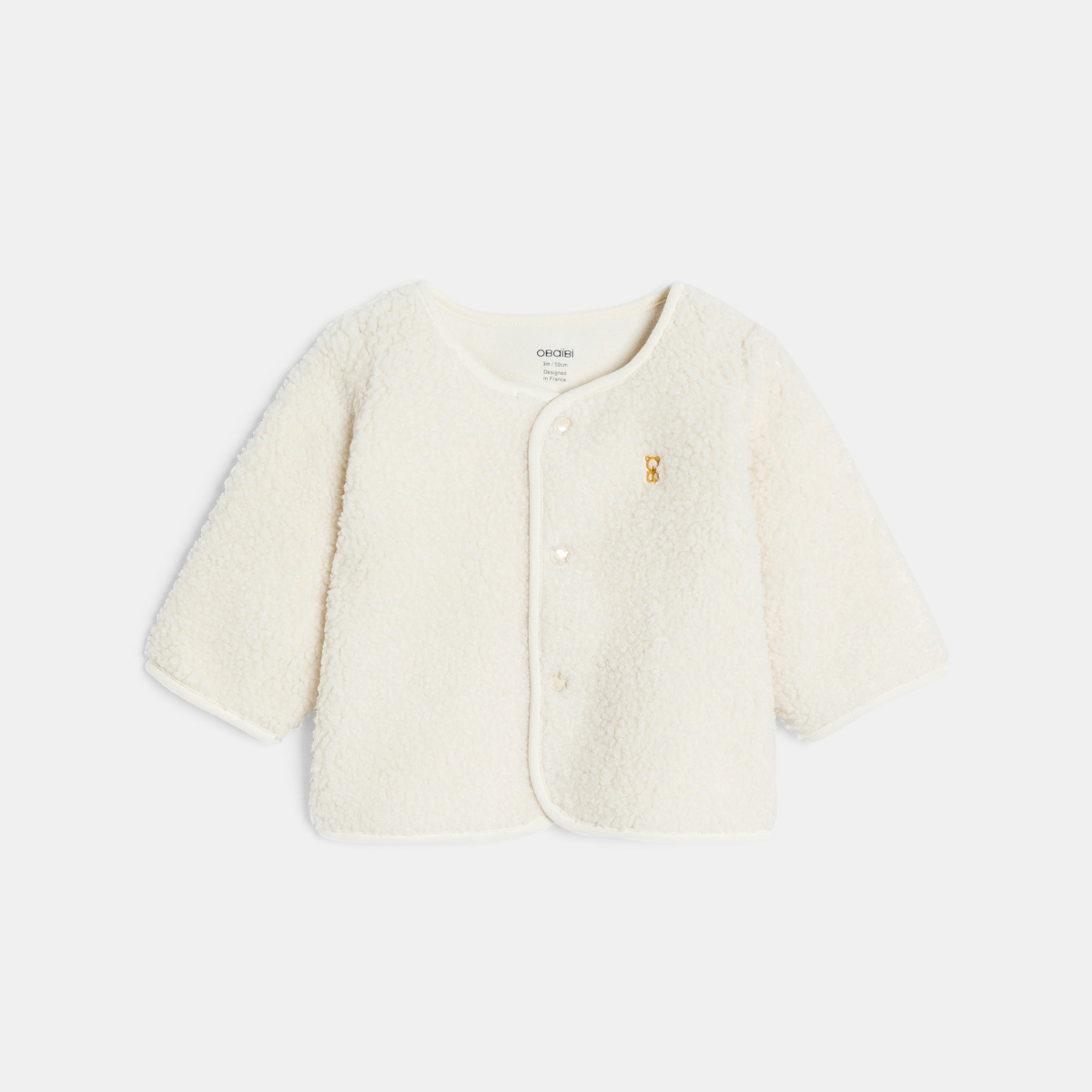 لمسة ناعمة ومُفعمة بالحيوية والحماس في الأيام الأولى للصبيان حديثي الولادة : يوفر لهم هذا الطقم راحة كبيرة. سترة جيليه من نسيج صوف الشيربا الناعم، بأكمام طويلة والإقفال بأزرار كبس. بنطلون)سروال( مُضلع من المخمل، بخصر مطاطي وواسع. قميص بودي بأكمام طويلة مع ياقة صغيرة وبأزرار كبس للإقفال في جهة الظهر وقوس لإضفاء لمسة جمالية على الطقم الذي يمثل هدية رائعة للطفل حديث الولادة.