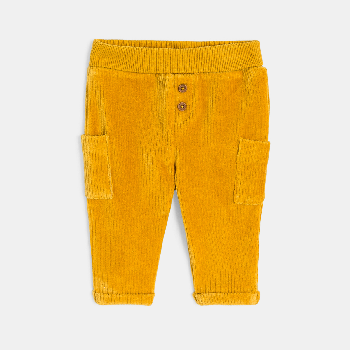 سترة جيليه من نسيج صوف الشيربا وبنطلون)سروال( من المخمل وقميص بودي أصفر للصبيان حديثي الولادة