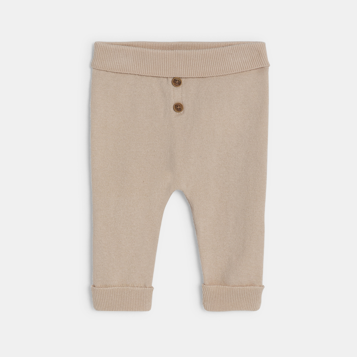 طقم للأطفال الصغار، منسوج بالتريكو، باللون البيج الفاتح.