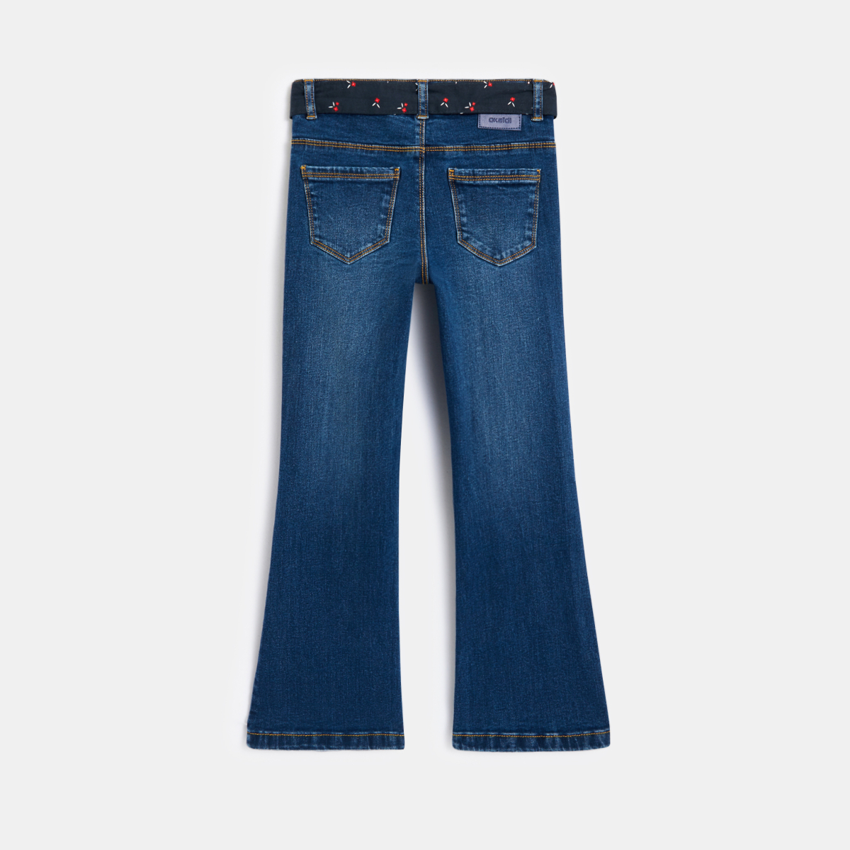 بنطلون جينز بأرجل واسعة وحزام باللون الأزرق للفتيات