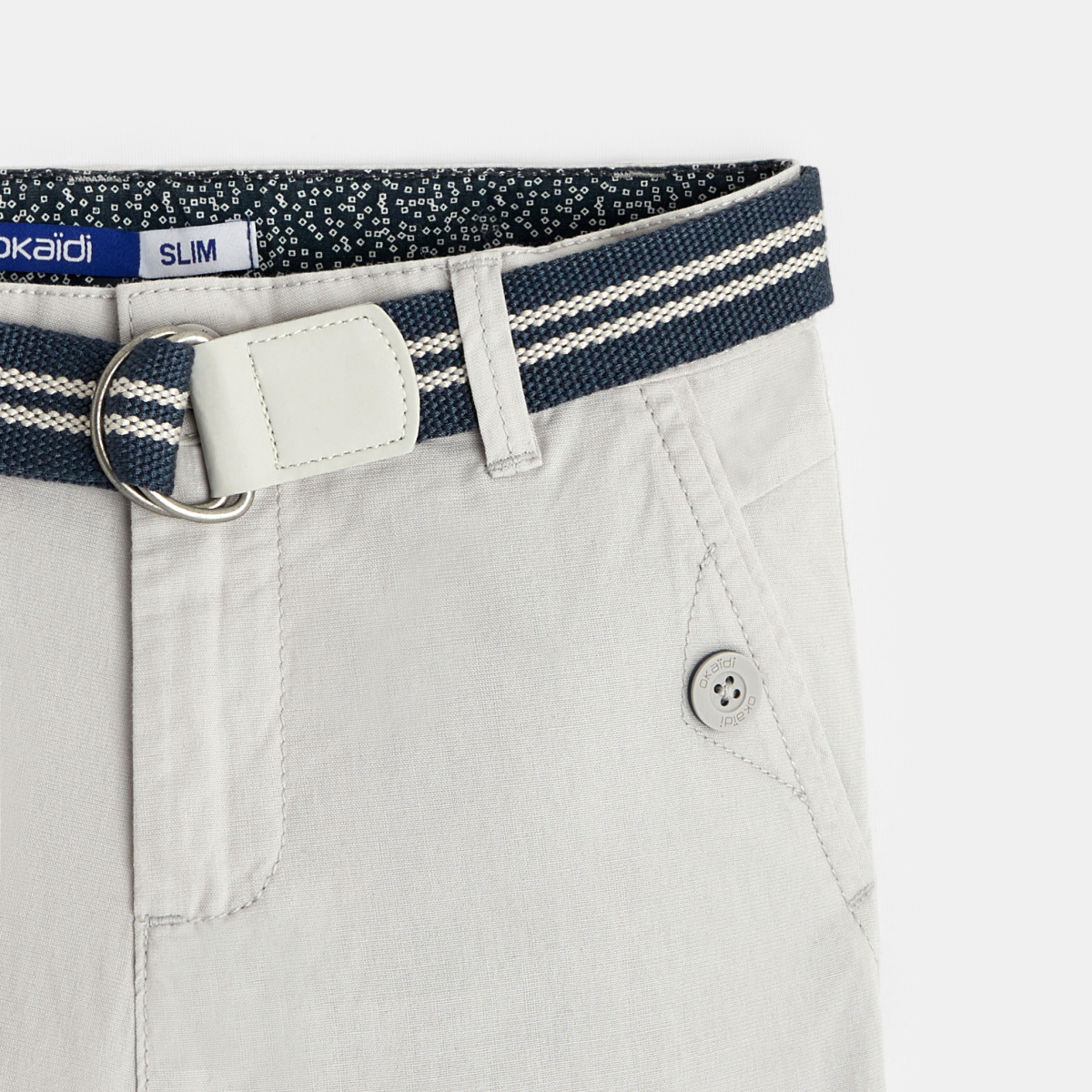 بنطلون )سروال( من القماش، بقصة ضيقة، مع حزام، باللون الرمادي، للفتيان
