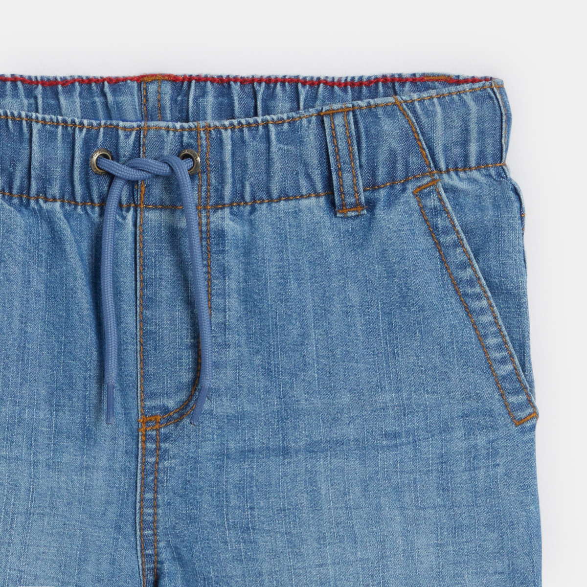 لمظهر رائع ومريح للأولاد: يوصى بارتداء هذا الجينز الخفيف للعب وللخروج والتجول في عطلات نهاية الأسبوع والاستمتاع بالعطلات! جينز أزرق باهت. خصر مطاطي قابل للتعديل، مع رباط شد. جيبان.