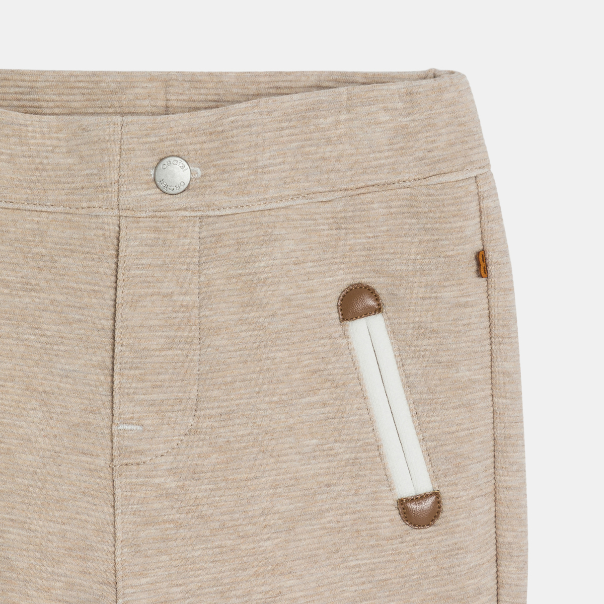 بنطال محاك من نسيج فاخر ومضلع باللون البيج للأولاد الصغار
