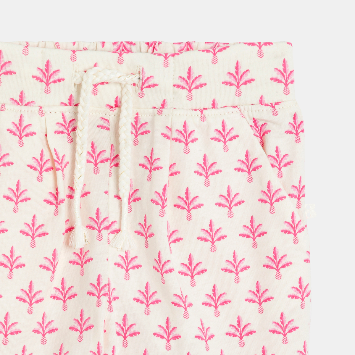 بنطلون وردي اللون جيرسيه قطني عليه صور أشجار النخيل للطفلة الرضيعة
