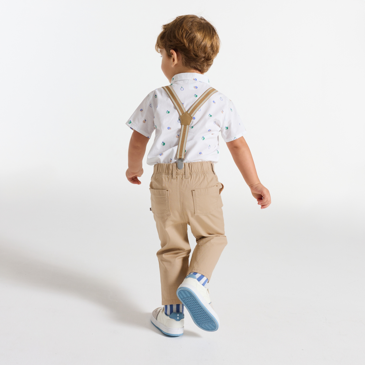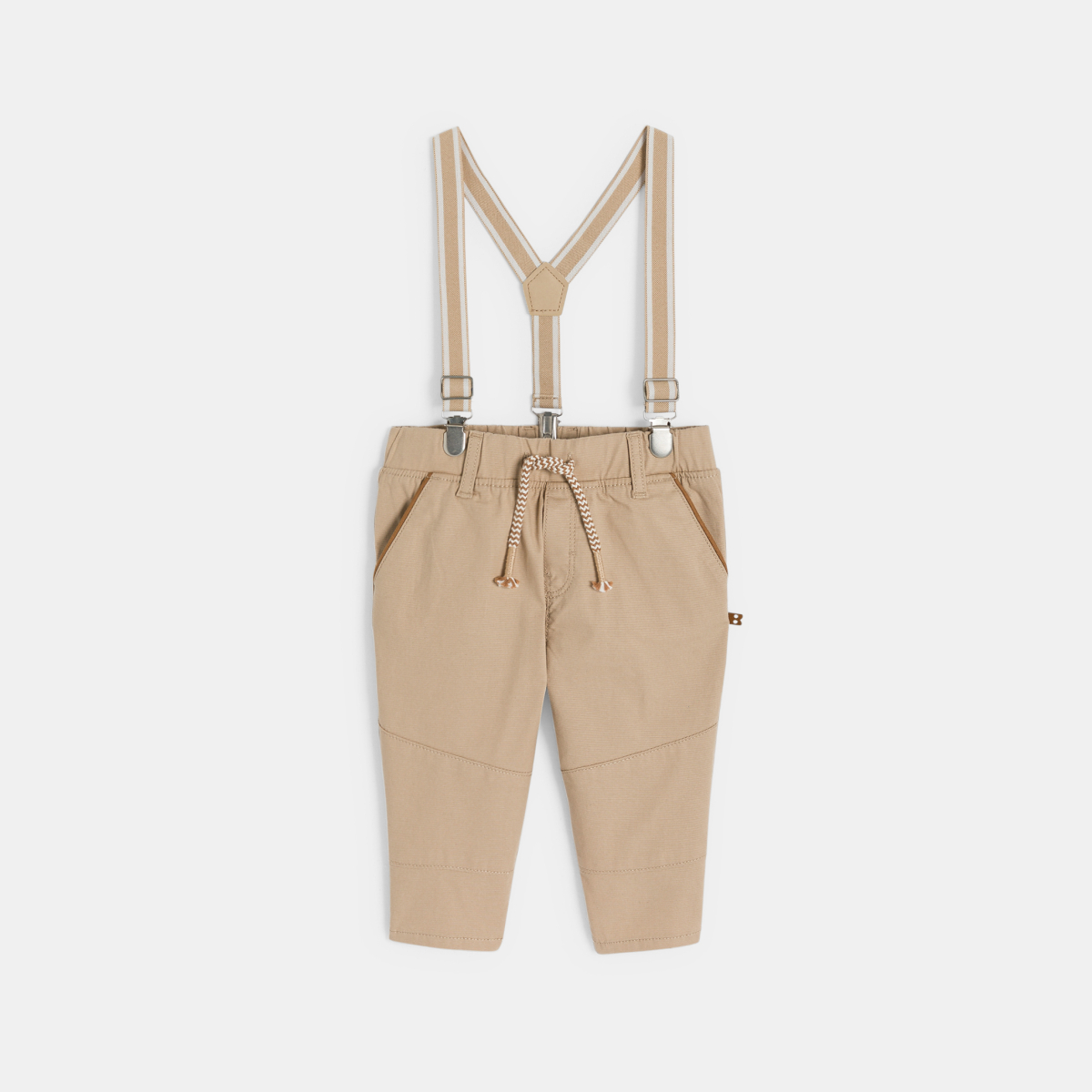 بنطال قطني بحمالات باللون البيج للأولاد الصغار