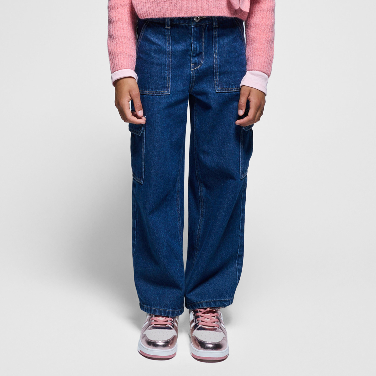 بنطلون جينز كارغو، باللون الأزرق، للفتيات
