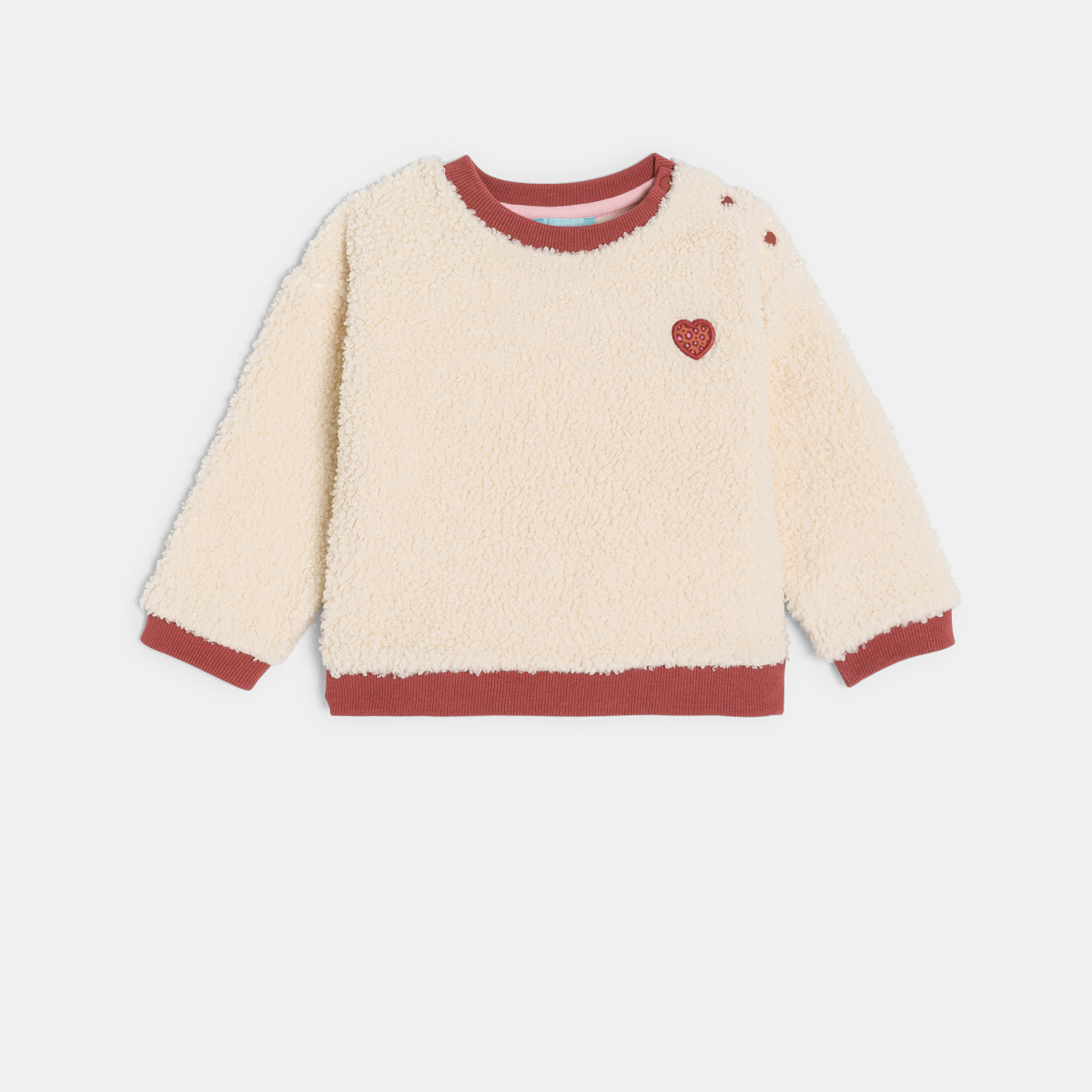 موعد مع الدفء والراحة عند ارتداء هذا الطقم، الذي تجتمع فيه الراحة البالغة، والأناقة معًا ! تحب الفتيات هذا الطقم المكون من سويت شيرت مصنوع من نسيج صوف الشيربا الناعم والمرن، والمُزيَّن بنقشة قلب صغير مُطرّز وحواف سفلية مُضلعة، وكذلك بنطلون(سروال) لاغينغ مصنوع من قماش الجيرسيه المطبوع وهو سهل الارتداء. كنزة بأزرار كبس على الكتف للفتح. بنطلون (سروال) لاغينغ بخصر مُسطح ومطاطي.