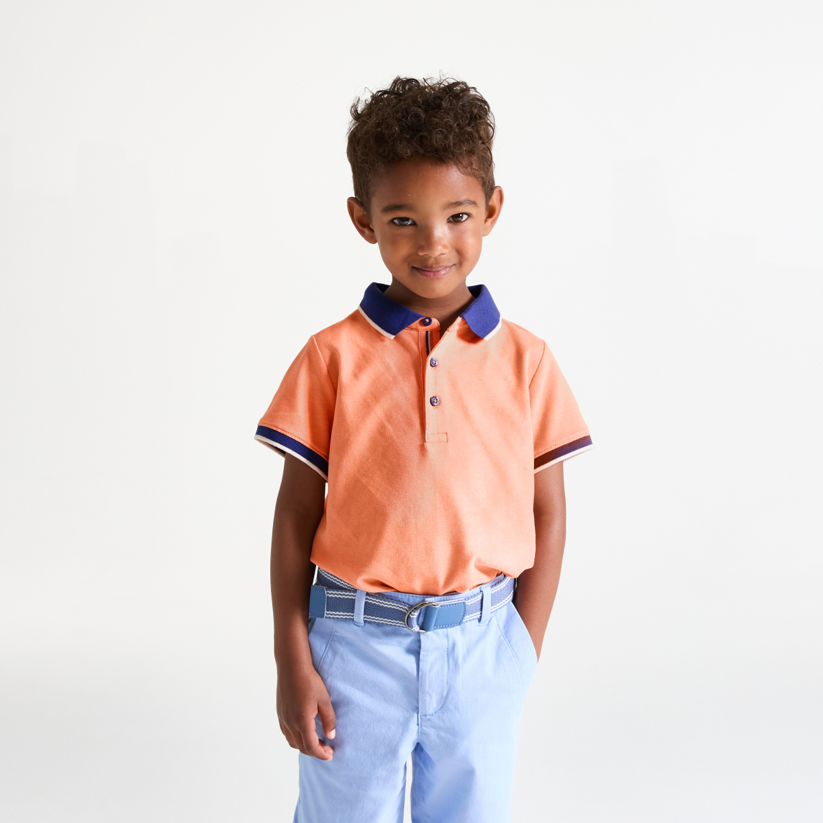 وصفي عنصر أساسي لا غنى عنه في خزانة ملابس الأولاد: يتحول هذا القميص البولو من مظهر حضري إلى مظهر رياضي من يوم لآخر: فهو يناسب كل شيء! قصّة مستقيمة. ياقة بولو مع طية صدر السترة مضلعة مع فتحة زر لسهولة الارتداء. أكمام قصيرة ، أساور أكمام مضلعة. الحافة السفلية مستقيمة.