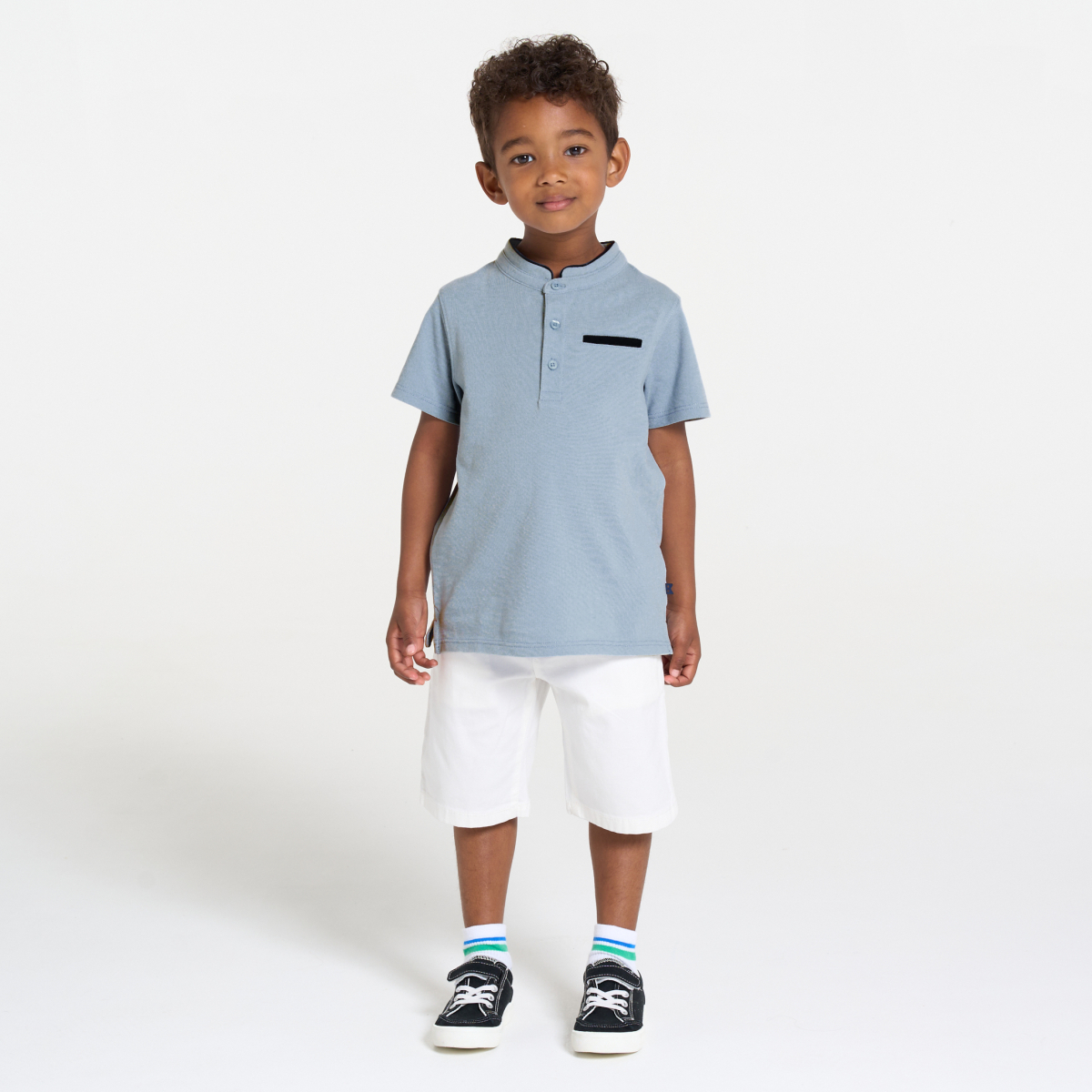 مظهر رياضي أنيق لقميص بولو ليس مثيل القمصان الأخرى: تضفي ياقة ماو لمسة من الأصالة المرحب بها! جيرسيه مُثقب. قصّة مستقيمة. ياقة بفتحة بأزرار، لسهولة الارتداء. جيب واحد بالجهة الأمامية على الصدر. أكمام قصيرة. الحافة السفلية مستقيمة. خياطة من اللون ذاته.