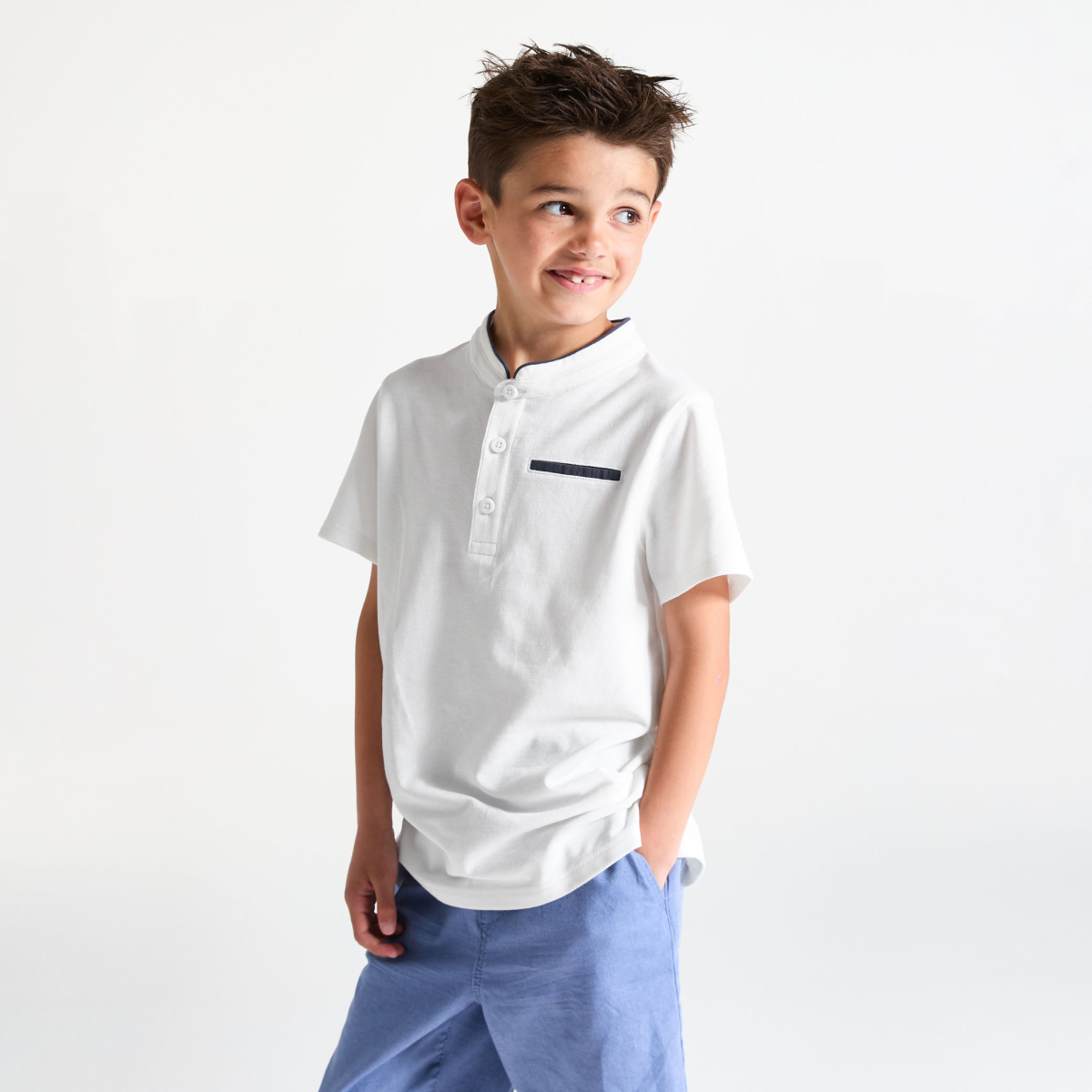 تي شيرت بولو بأكمام قصيرة وباللون الأبيض، للفتيان