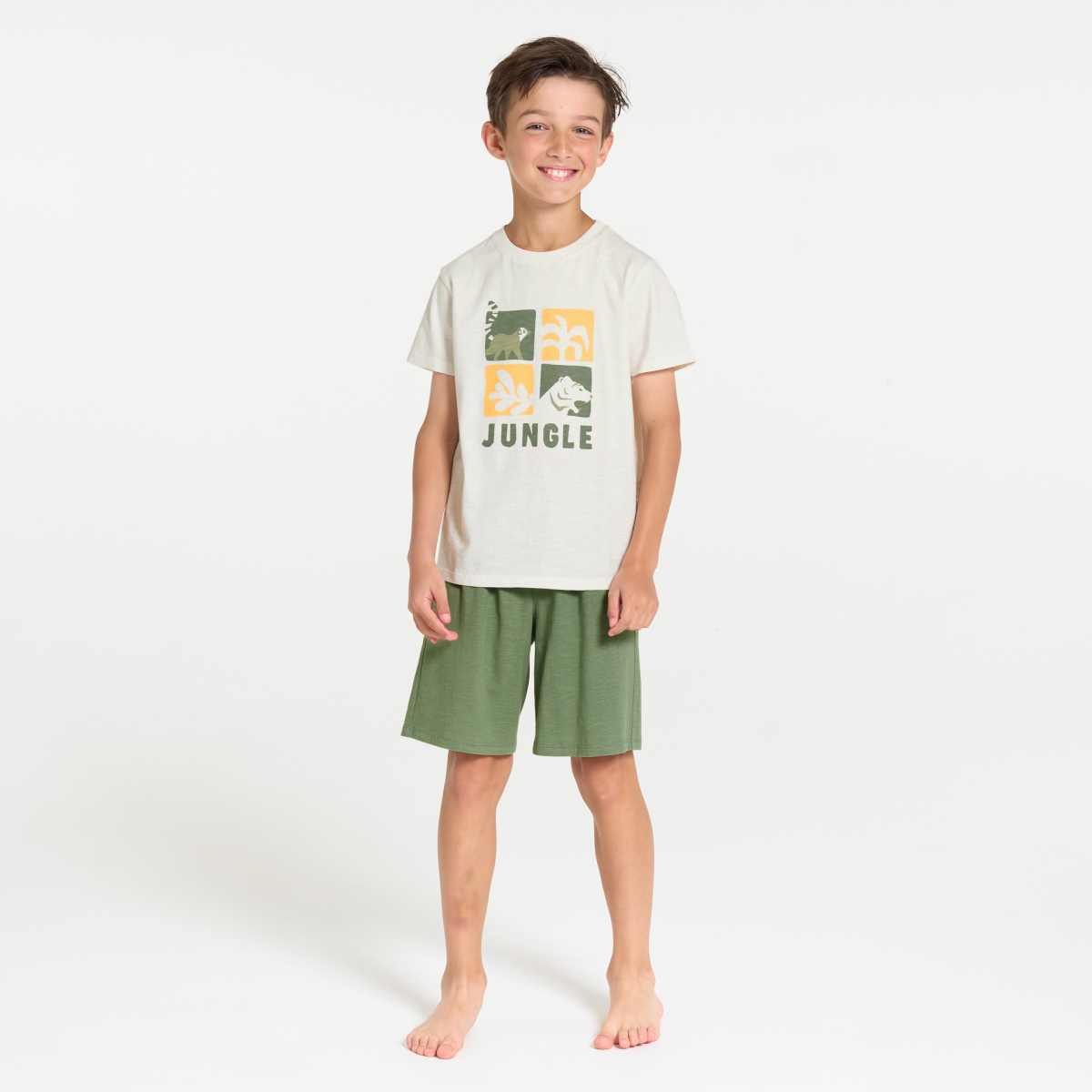 بيجاما صيفية جيرسيه من قطعتين، اللون أخضر كاكي للأولاد