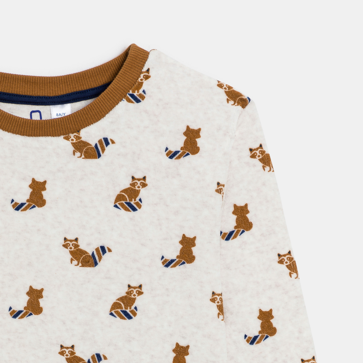 بيجاما قطعتان من القطيفة للأولاد ومنقوش عليها، فراء الراكون، اللون بيج