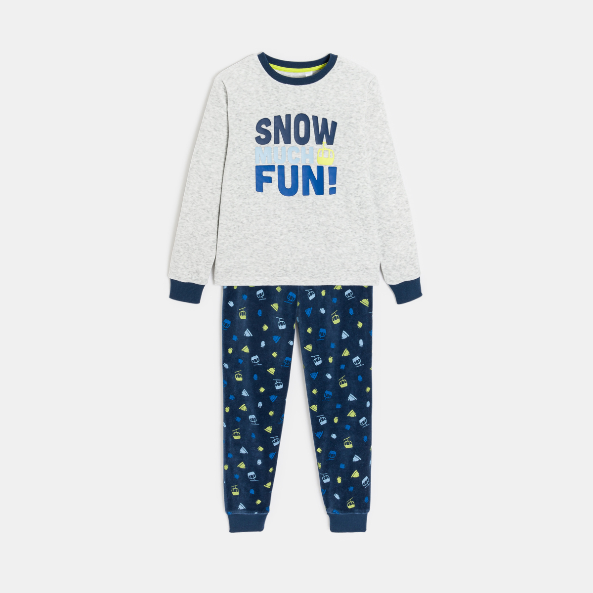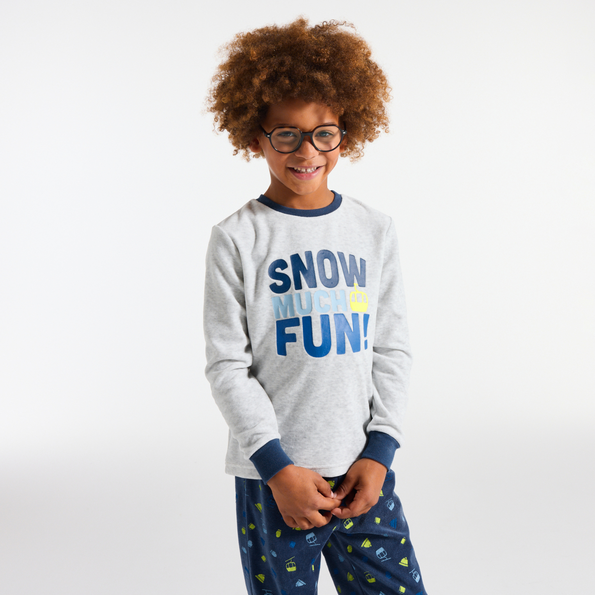 بيجاما من قطعتين للفتيات، من المخمل الرمادي وتحمل رسالة مطبوعة