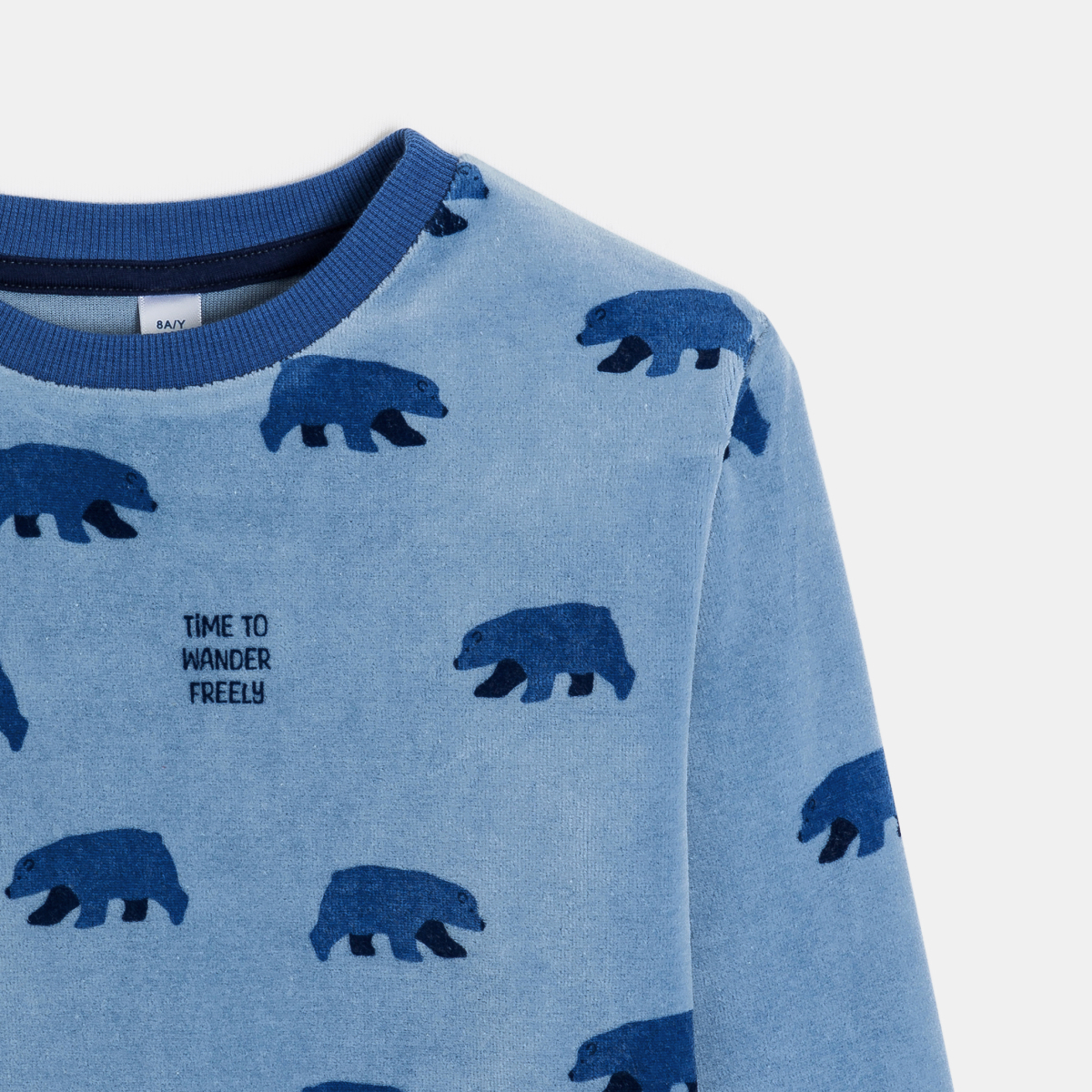 بيجاما من قطعتين، من المخمل وباللون الأزرق، مُزينة برسمة دب، للفتيان
