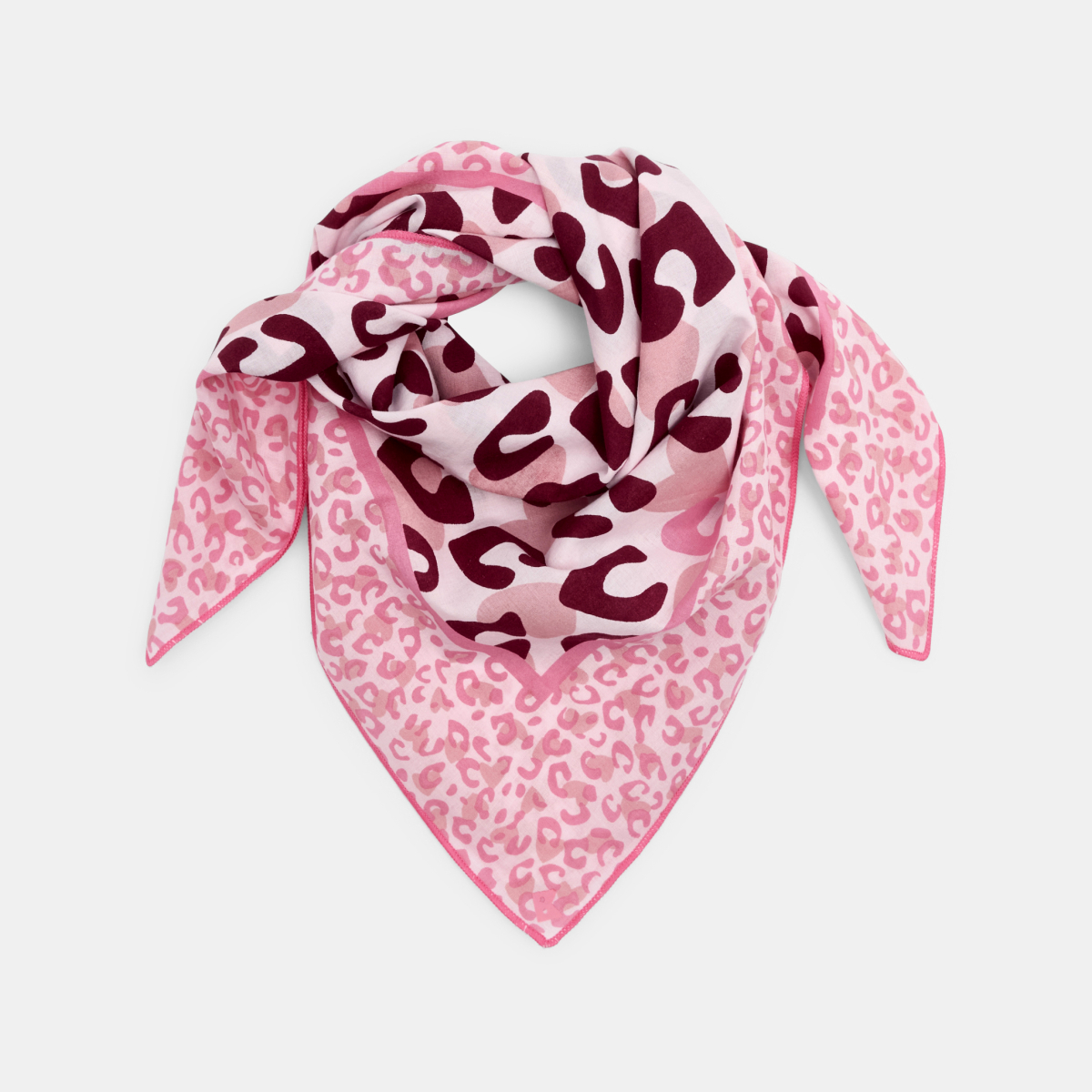 وشاح مريع وردي اللون للفتيات عليه طباعة