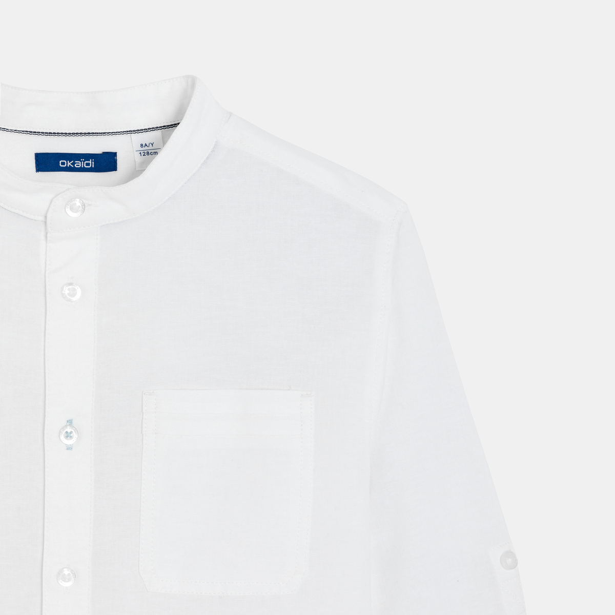 قميص سادة بياقة قائمة باللون الأبيض للأولاد
