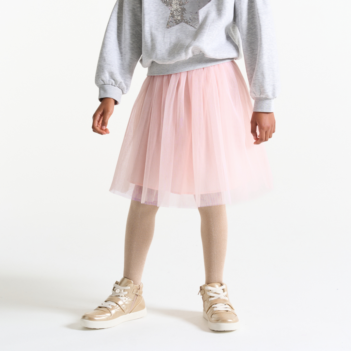 تنورة من التول بطيات، باللون الوردي، للفتيات