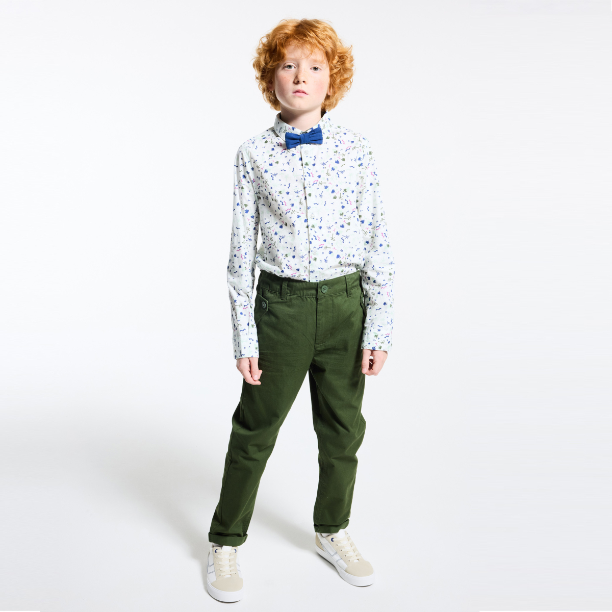 بفضل أكمامه الطويلة التي يمكن طيها بعروات وأزرار، هذا القميص مناسب لجميع المناسبات! الأولاد يحبون رسومها الممتعة. تصميم بأزرار مع ياقة صغيرة.