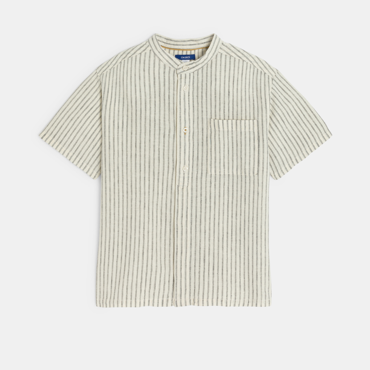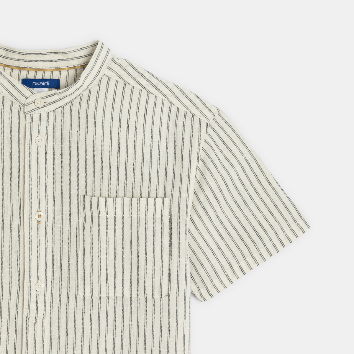 قميص بأكمام قصيرة من الكتان المقلم للأولاد، اللون بيج