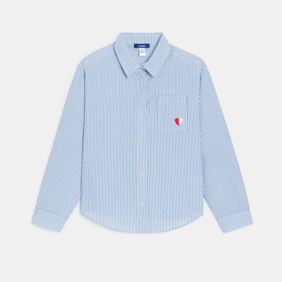 قميص مقلم أزرق اللون وعليه نقش قلب مطرز للفتيات
