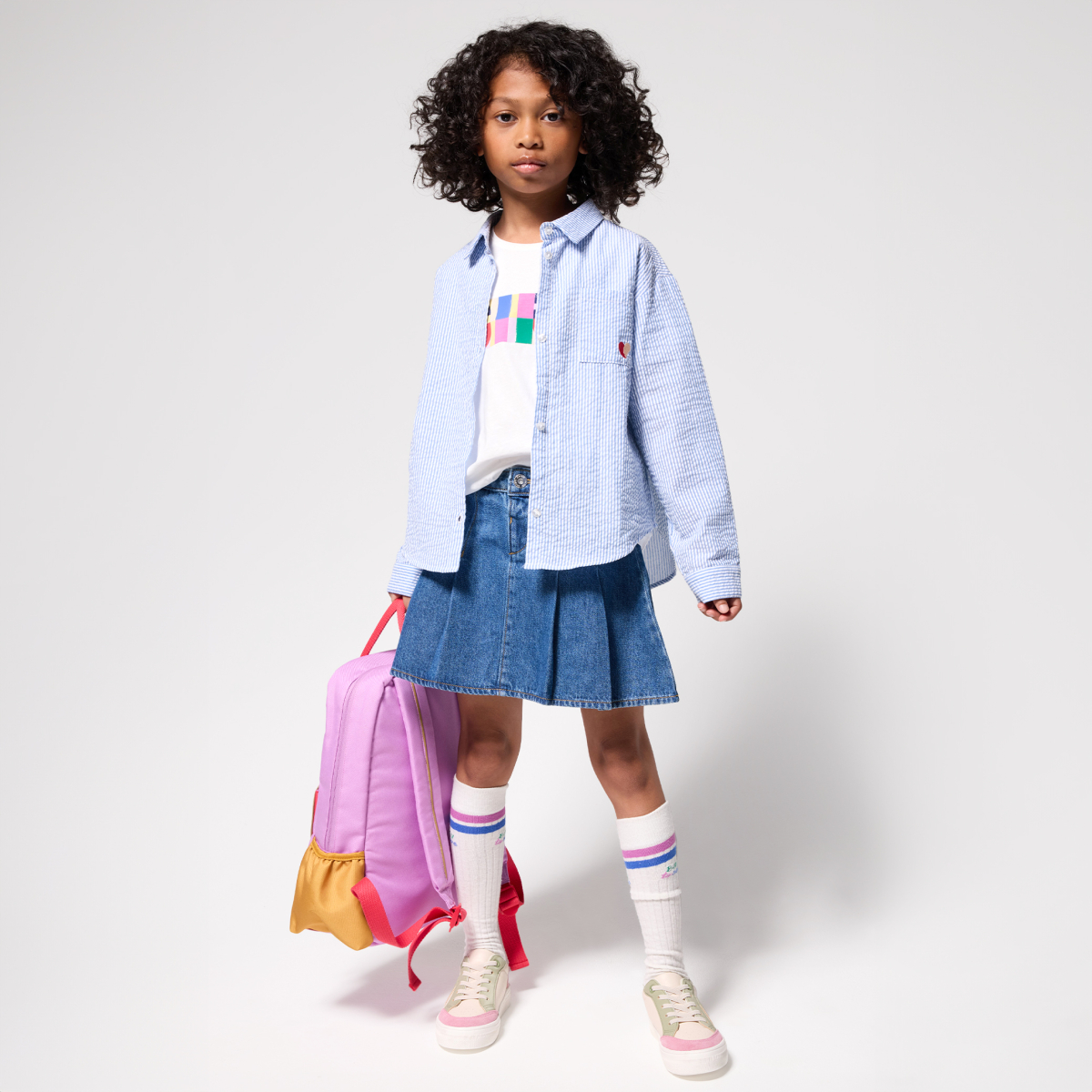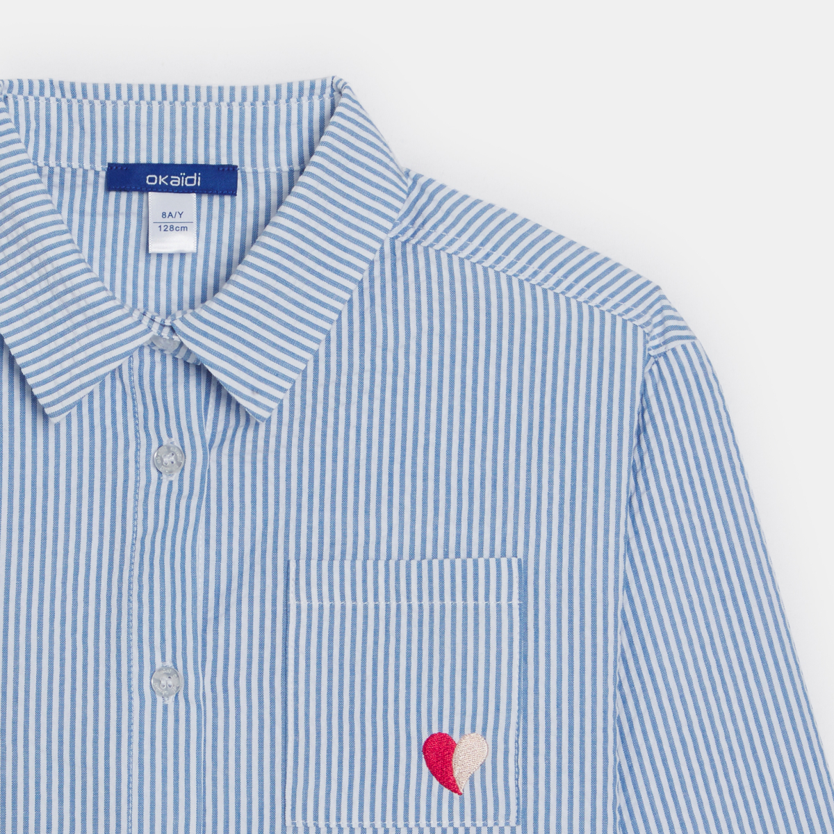 وصفي يوجد قلب مطرز على الصدر، وحب من النظرة الأولى لهذا القميص المقلم. بوبلين قطني. خطوط بخيوط ملوّنة. قصّة مستقيمة. ياقة قميص. أكمام طويلة، وأساور الأكمام بأزرار. جيب واحد على الصدر. الحافة السفلية مستديرة. لمسات نهائية من نسيج بيكيه.